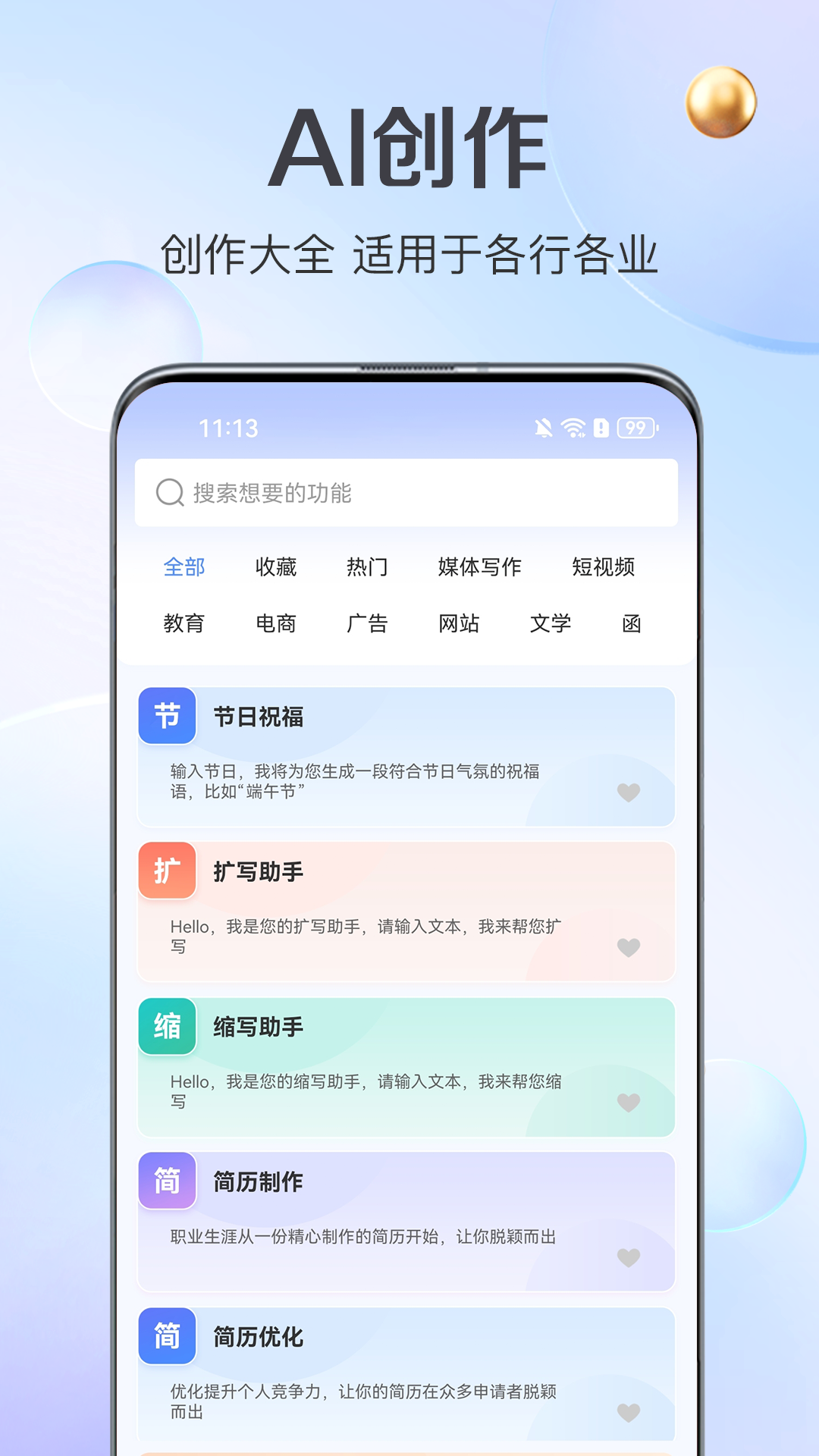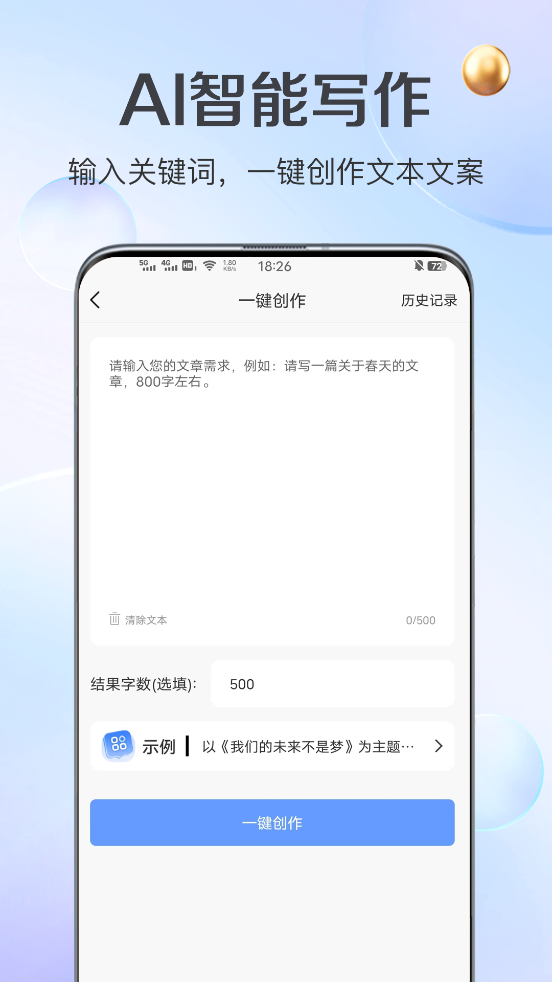 在AI智能写作板块,您只需输入文章需求,即可实现文案智能改写,一键完成创作,让您从繁重的写作任务中解脱出来!