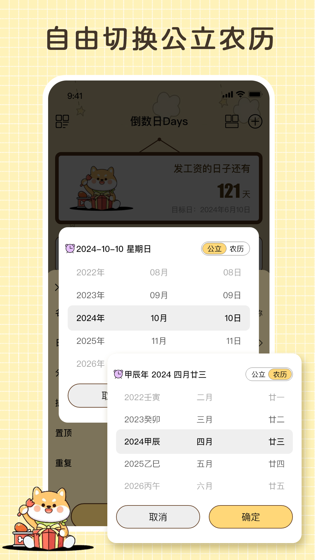 3、无论是倒数剩余日子,还是农历日期,甚至重复倒数(涵盖每年、每月、每周),皆能完美应对。