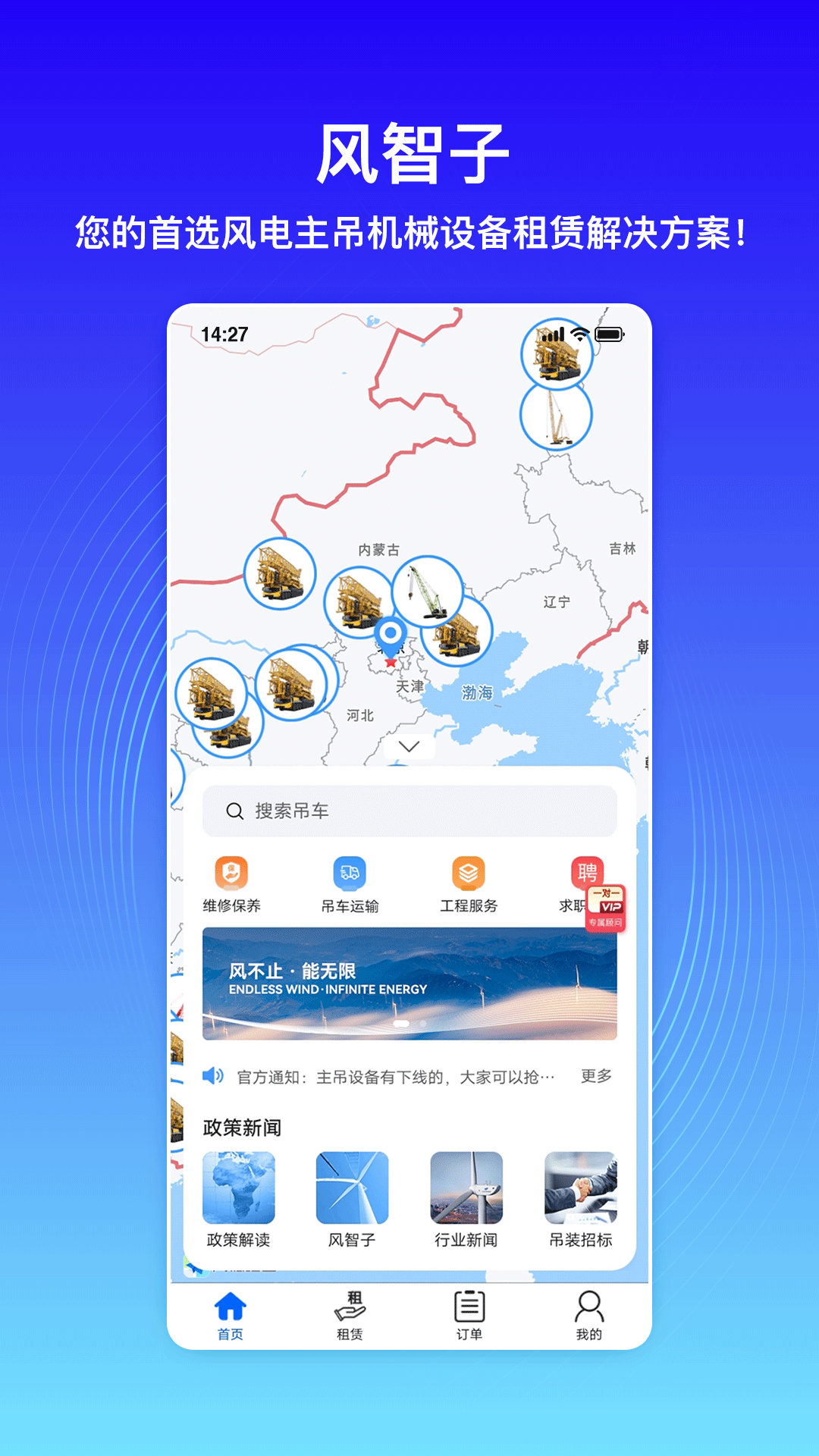 风智子,带您体验便捷、高效、可靠的风电专业主吊设备租赁服务!