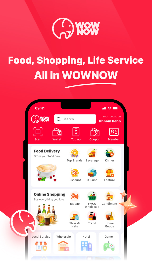 大象APP(WOWNOW)为在柬用户提供外卖、购物、支付、团购、旅游、游戏等多种生活服务,致力于让用户随时随地拿起手机就能享受便捷生活。大象APP还将持续完善自身,目的是真正融入用户生活,打造一个多功能的超级便民服务平台。