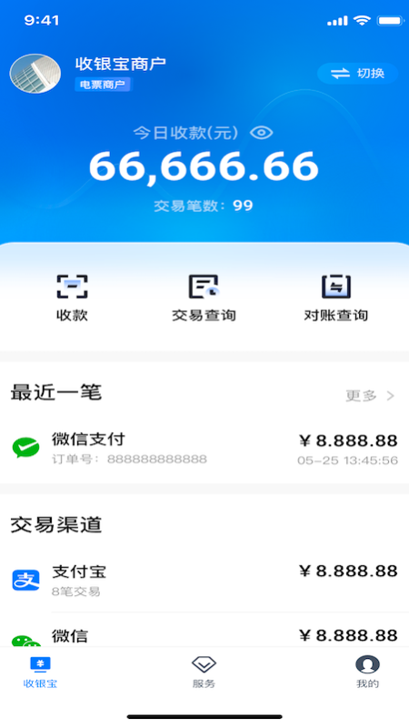 平安银行收银宝是一款高效、便捷的收款工具,为商户提供一站式收银、对账、管理等服务。【账单】查询订单状态,每日营收一目了然。