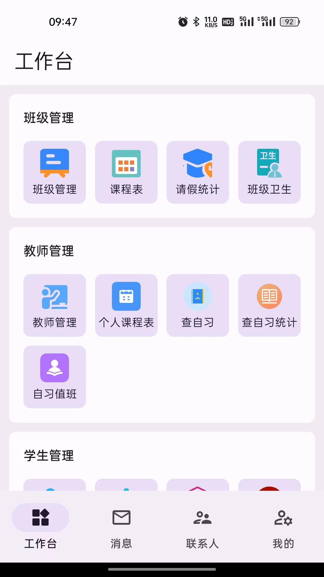 2、教职工管理: 教职工的个人信息、课程安排通过系统进行管理,实现人力资源的优化配置。