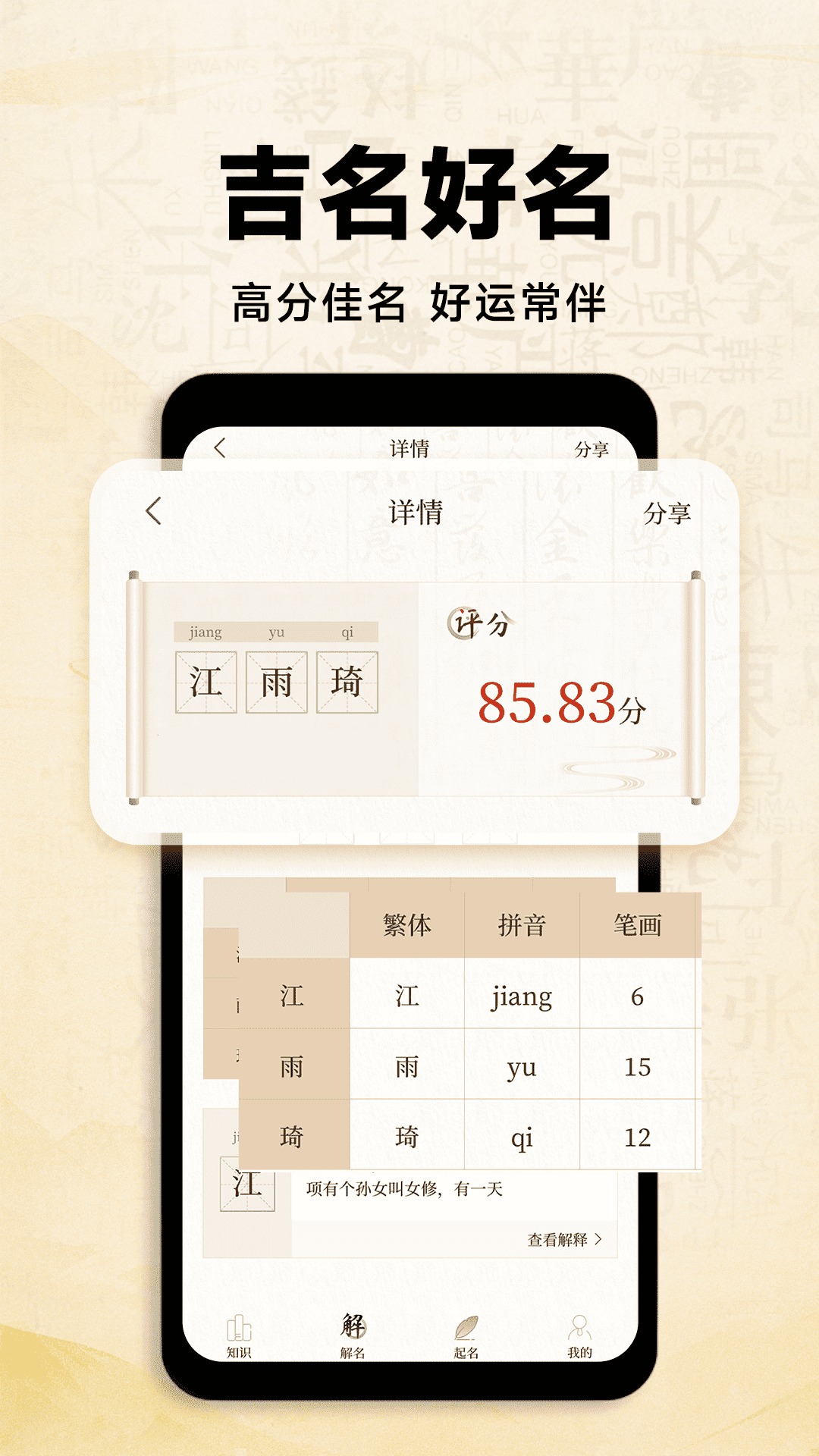 我们明白,对于每一个宝宝而言,名字都承载着父母满满的期望与祝福。基于此,我们为准父母们精心打造了取名服务。