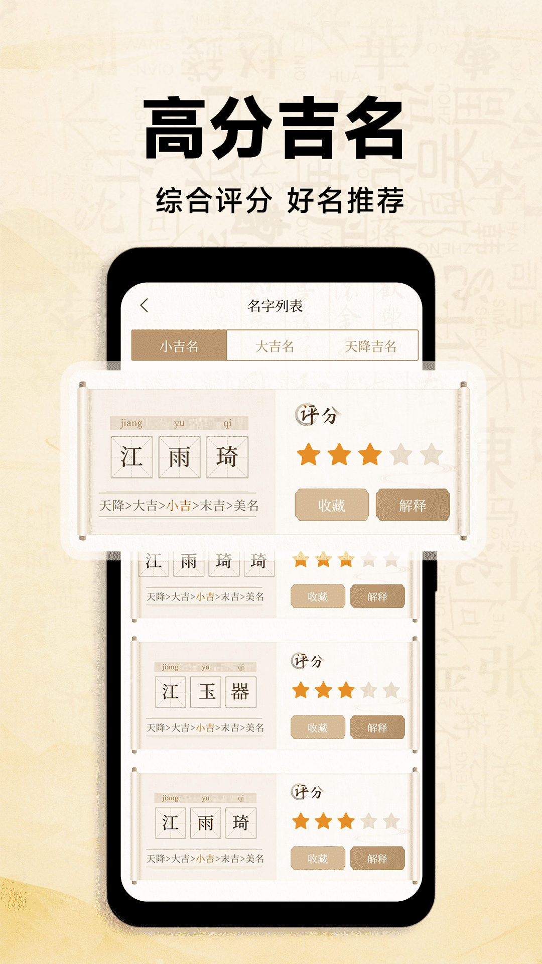 为了使您更便捷地挑选到满意的名字,我们专门提供高分名字功能。您可以利用此功能一键生成大量满足您需求的高分好名字。这些名字在音韵和寓意方面都达到了很好的平衡,让您在挑选名字时更省时间、精力。