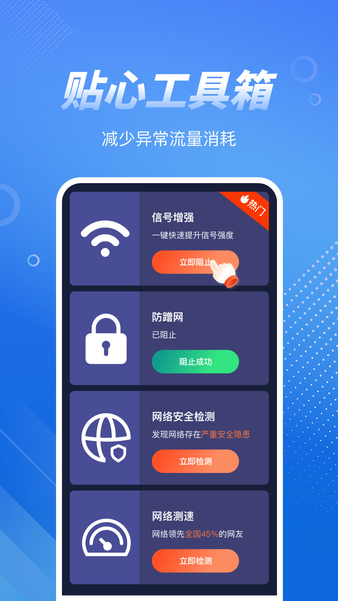 提供了网络测速、流量监测、附近wifi等多方面的功能,操作简单,