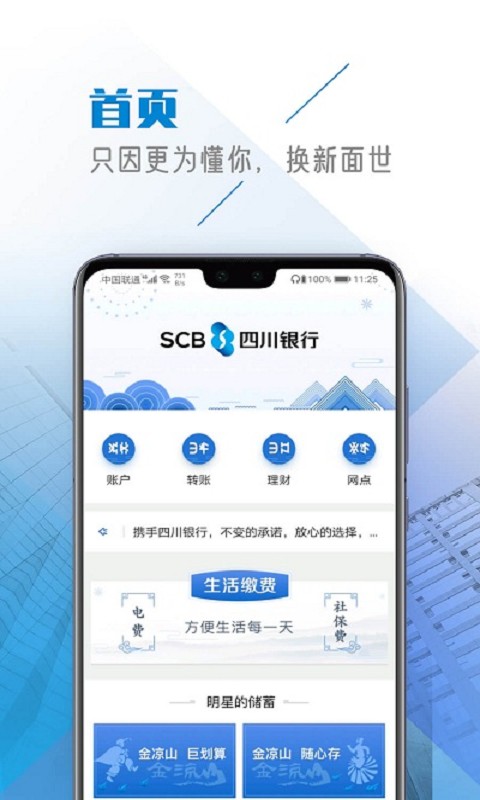 四川银行专为凉山地区客户打造移动金融服务平台,汇集新体验、新融合、新智能三大亮点,为您打造“智慧生活”用户体验的手机银行。
