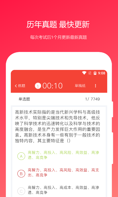 这个题库具备多种实用功能,满足您不同的备考需求。它包含随机测试功能,您可以随机选取100道或者50道试题进行模拟考试;错题库功能,在练习过程中系统会自动把错题添加到错题库,方便您反复练习;收藏夹功能,您在练习时能够自行将觉得比较重要的试题收录到收藏夹里,进行针对性练习,从而提高通过率。而且,即便处于离线状态,您也能够刷题,这样就能灵活利用碎片化时间进行复习了。