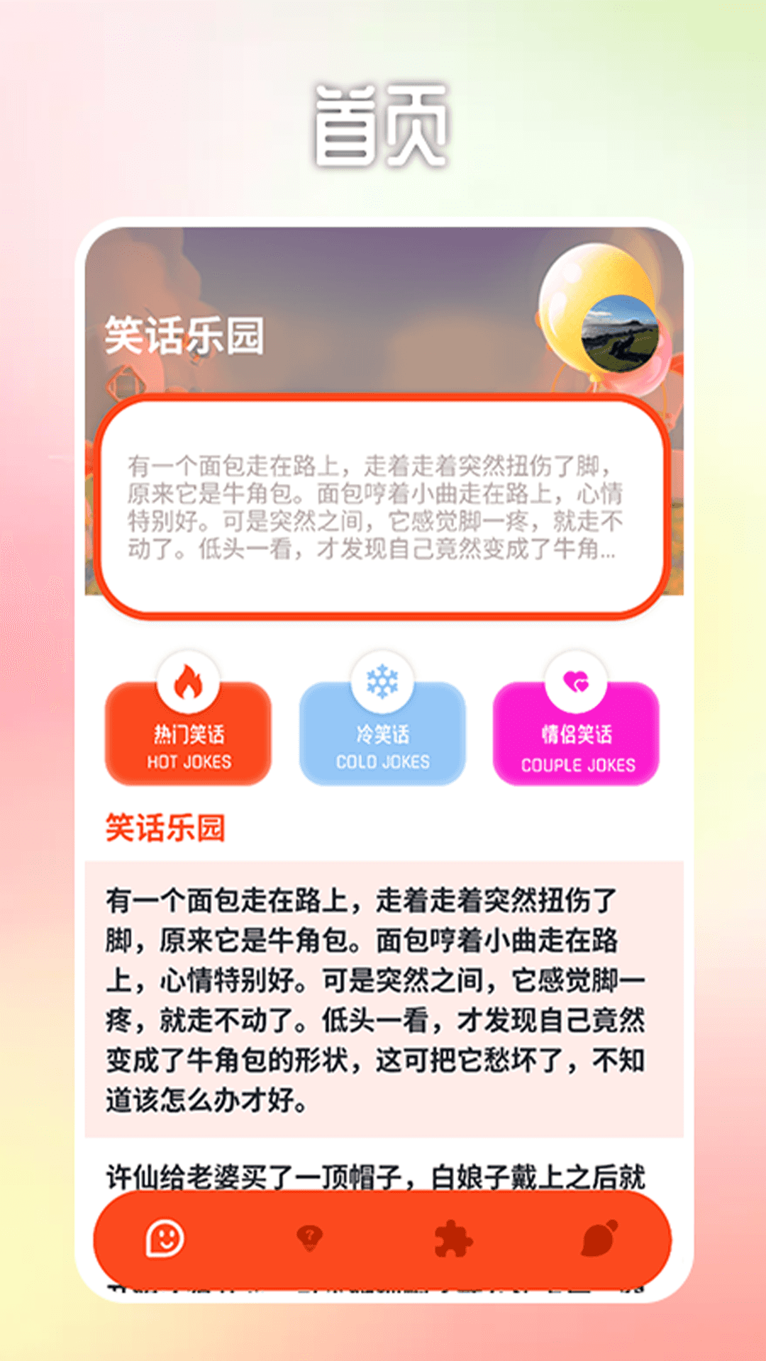 7399游乐园可是个超棒的休闲解压乐园哦!这里面有一个非常有趣的笑话乐园,在笑话乐园里呀,无论是热门笑话、冷笑话,还是情侣笑话,应有尽有。沉浸其中,能让你每天都开开心心的。此外,这里还有趣味答题乐园和拼图乐园呢,各种好玩的项目都在等待着你来体验哦。