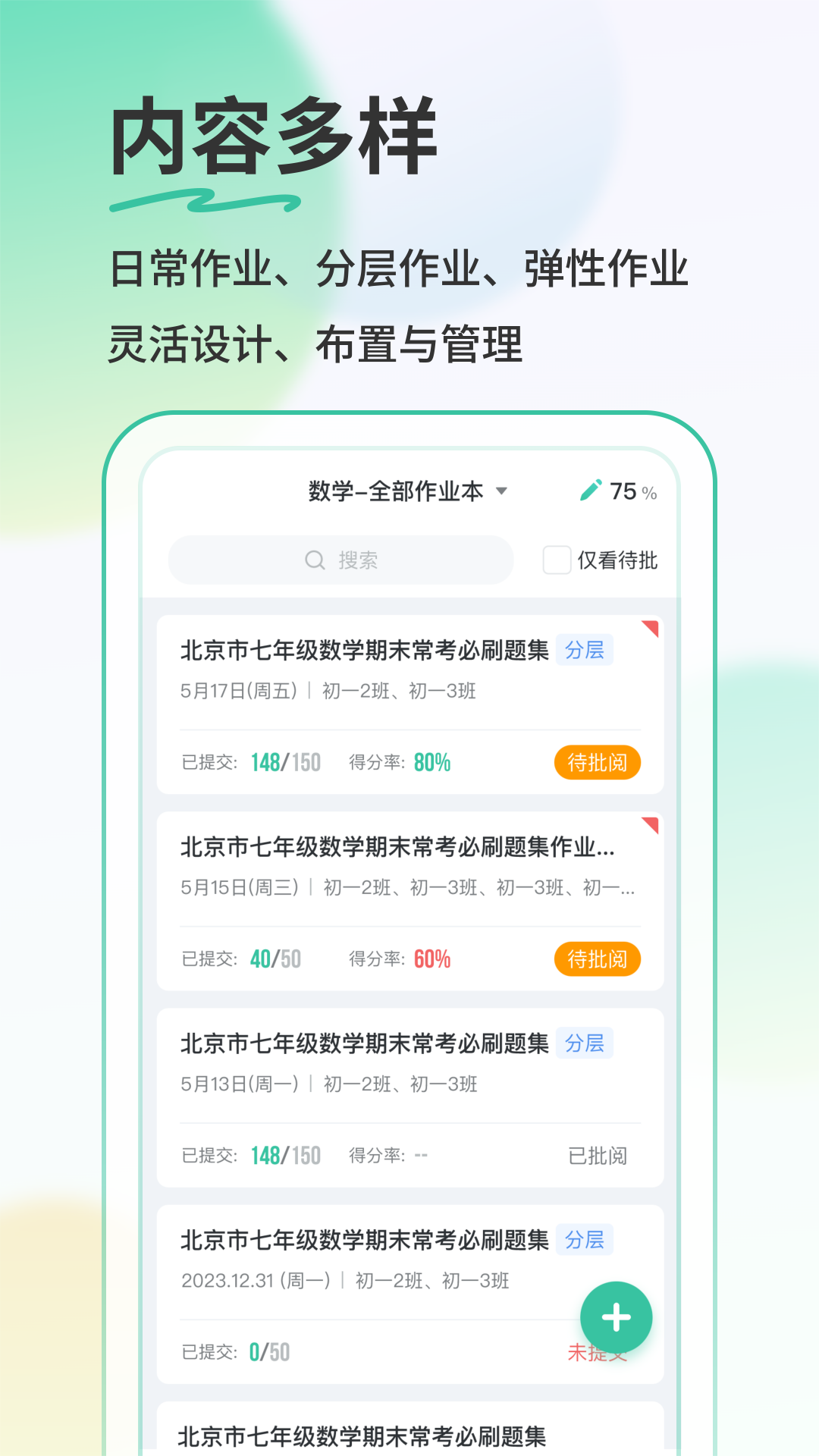 检查作业:实现客观题AI自动批改,教师仅需检查主观题作答情况,有效减少重复性工作。