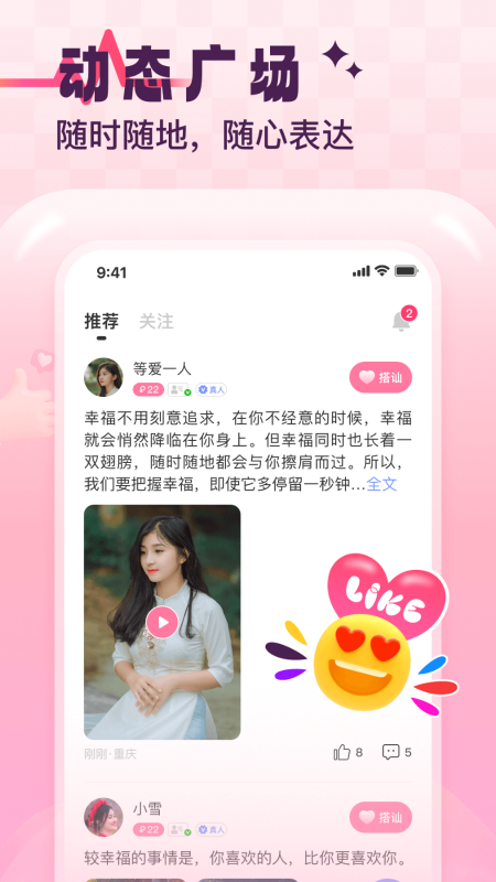 【生活动态】您可以通过文字、图片、视频等形式分享自己的生活,同时了解他人。要是遇到兴趣爱好相投的伙伴,就能畅快地相互倾诉,让身心得到舒缓。
