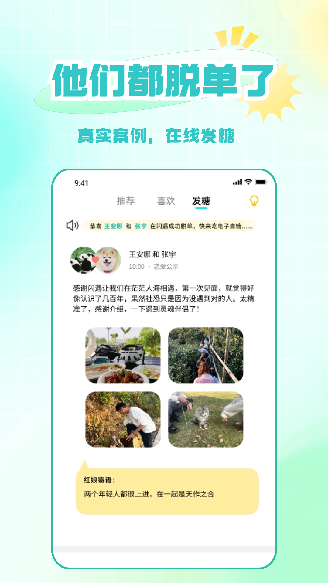对于单身的朋友,每天都有免费推荐。而且闪遇SHINING有着线上线下的双重认证机制,既安全又靠谱,能让大家放心参与其中,高效地找到合适的伙伴。还有执行官会进行邀约见面来破冰,解锁各种有趣任务后,马上就能出发开启精彩之旅啦!