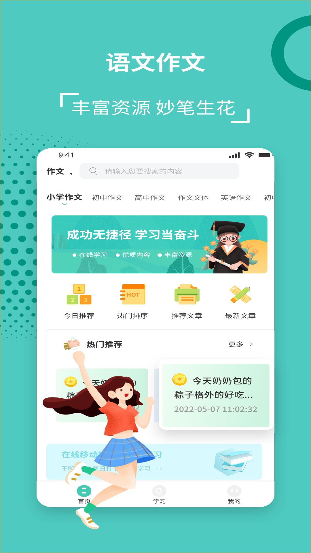 中小学网络云平台拥有众多智能教辅专项学习内容,涵盖作文参考学习、在线阅读、原创作品专栏学习、各类学习方法总结、实用范文借鉴、教育资讯获取、生活课堂学习以及各类百科知识学习等方面。并且,该平台支持打卡学习记录功能,能让学习变得更加轻松,让知识不再难学!
