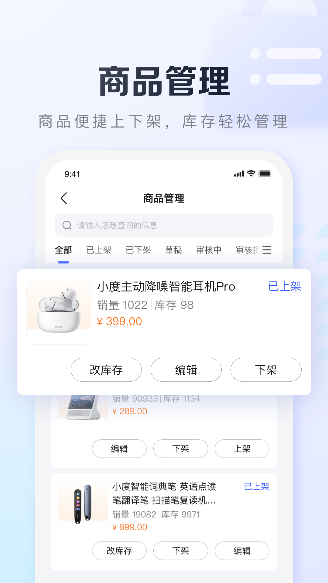 基木鱼开店(原名基木鱼电商)是百度官方推出的电商商家移动工作台,提供一站式全链路的生意经营工具,实现轻松入驻,便捷管理,实时提醒,数据分析等能力,随时随地满足商家的生意经营需求,助力经营增长。