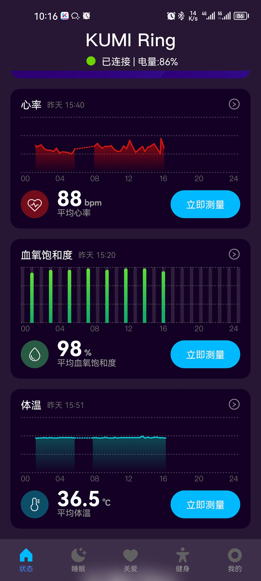 KUMI Ring是一款集智能戒指设备睡眠数据管理与睡眠健康服务于一体的应用。它能助力用户对睡眠和活动情况进行记录、分析,使用户可以轻松知晓自身身体状态,还能为用户给予专业且可靠的睡眠指导,成为贴心的个人睡眠健康管家。