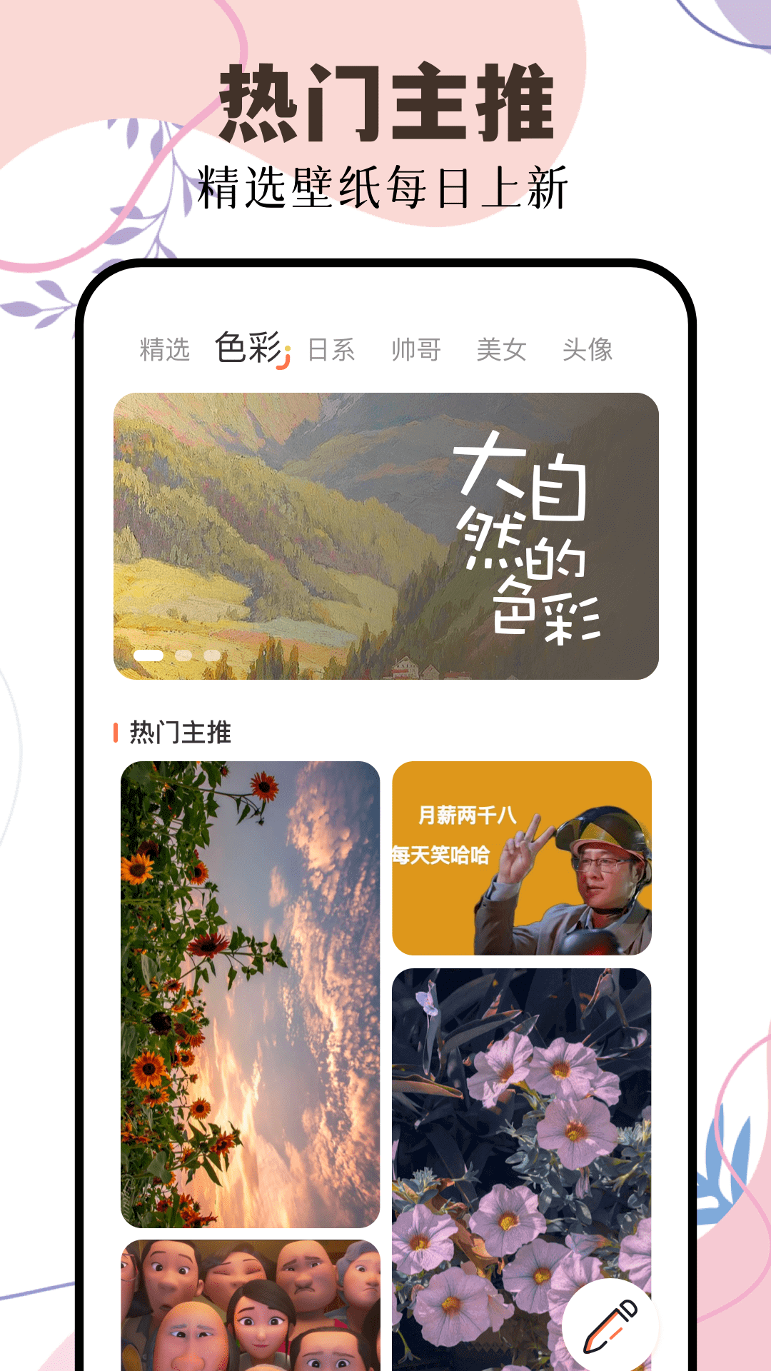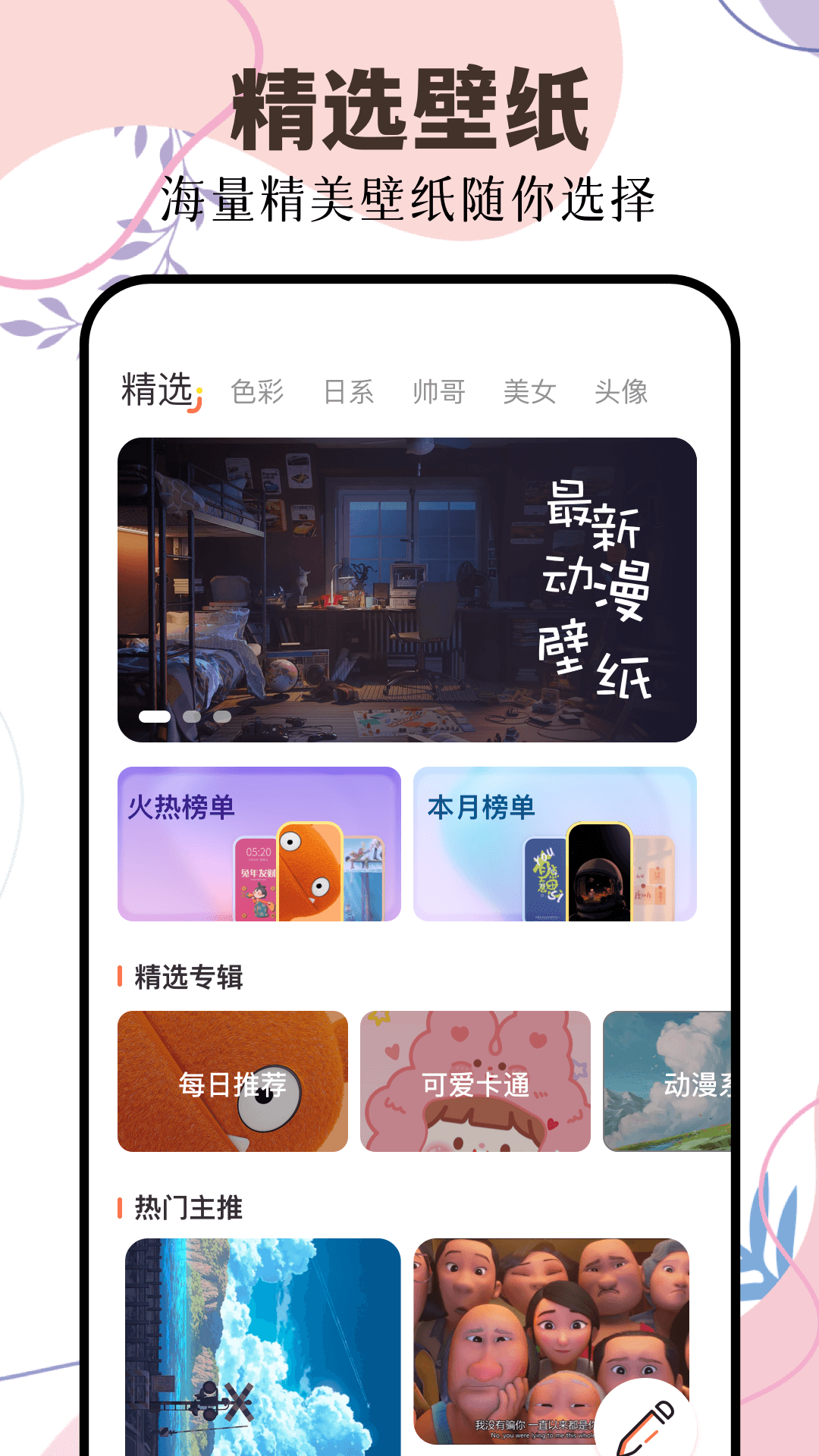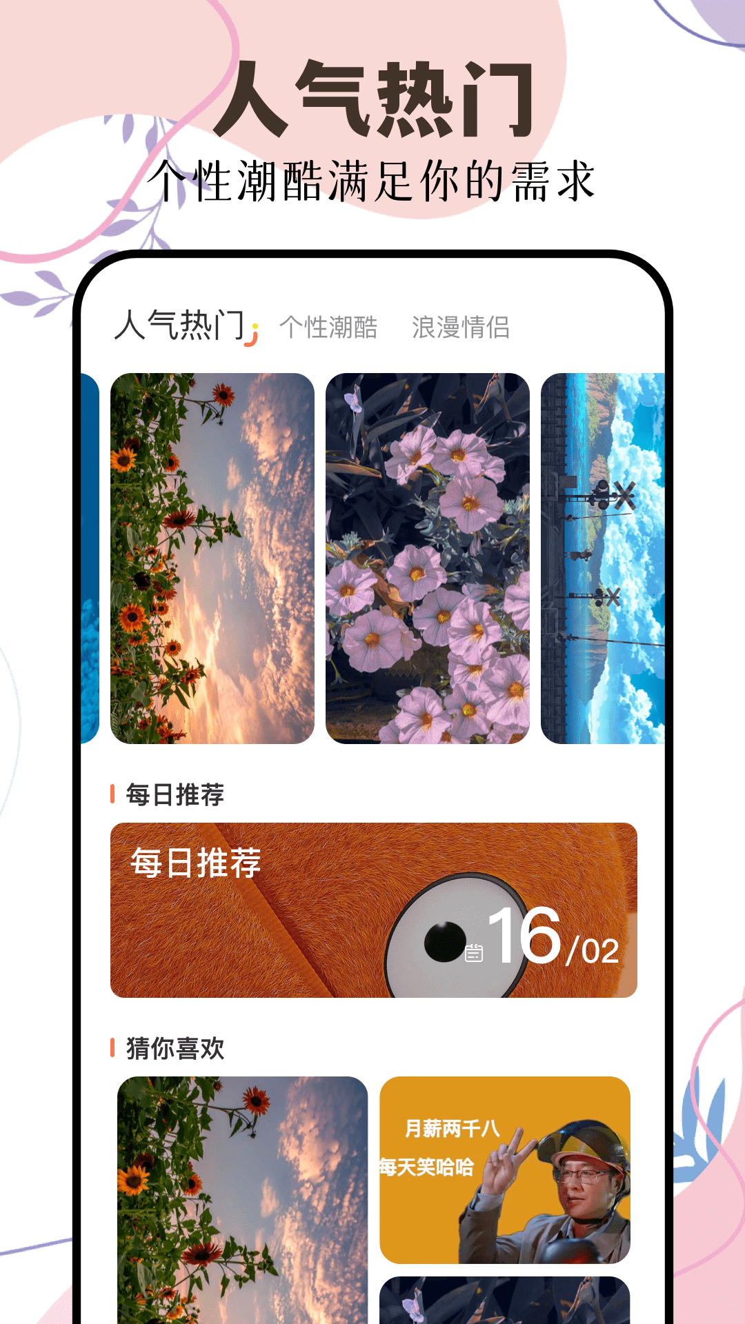 这里不但有海量高清的静态壁纸,还有动态壁纸,只为让您的手机桌面更加精彩迷人。壁纸画质高清,画面灵动且优美,保准您一看到就会爱不释手。