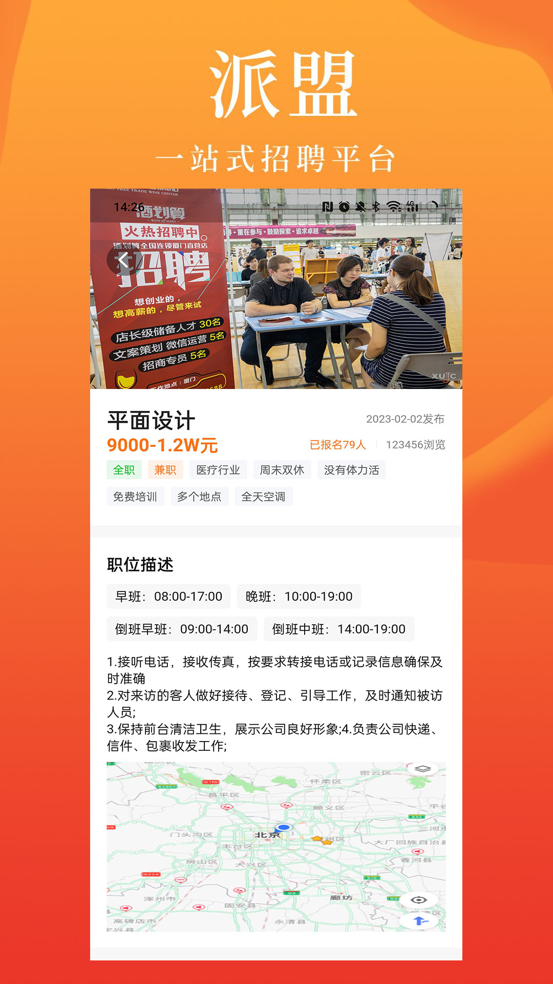 派盟,这是一款专注于互联网招聘求职的手机APP,堪称智慧型服务的一站式免费招聘与找工作平台。它能够依据用户定位,精确地匹配附近的优质工作机会,极大地方便了求职者就业,同时也让招聘者寻觅人才变得更为轻松容易。