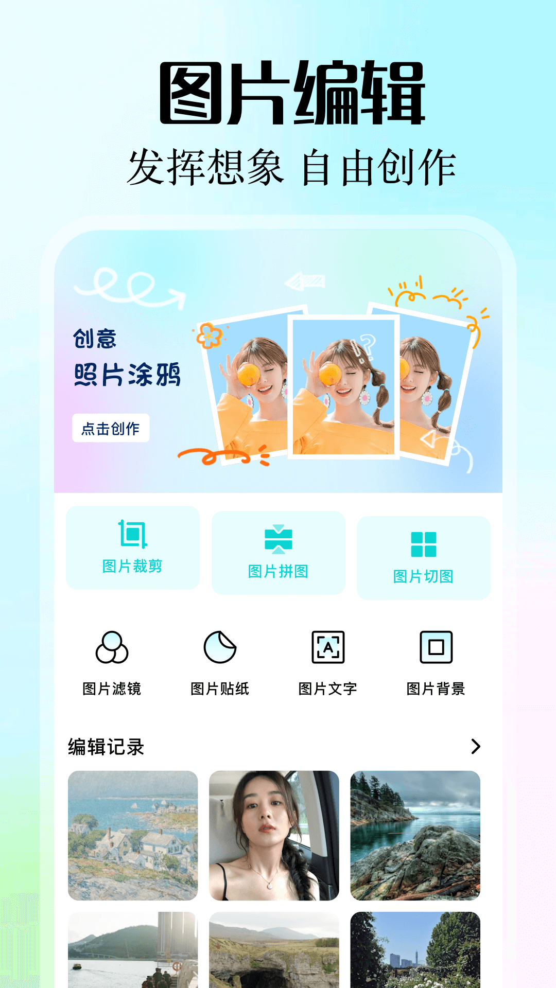 在图片编辑上,您可以尽情发挥想象力,自由进行创作。不管是充满创意的照片涂鸦,还是像图片裁剪、拼图、切图之类的操作,它都能一一满足您的需求。精美的图片滤镜、俏皮可爱的贴纸、富有个性的文字、各式各样的背景,再加上详细的编辑记录,这一切都会让您的每一次创作都留下清晰的痕迹。