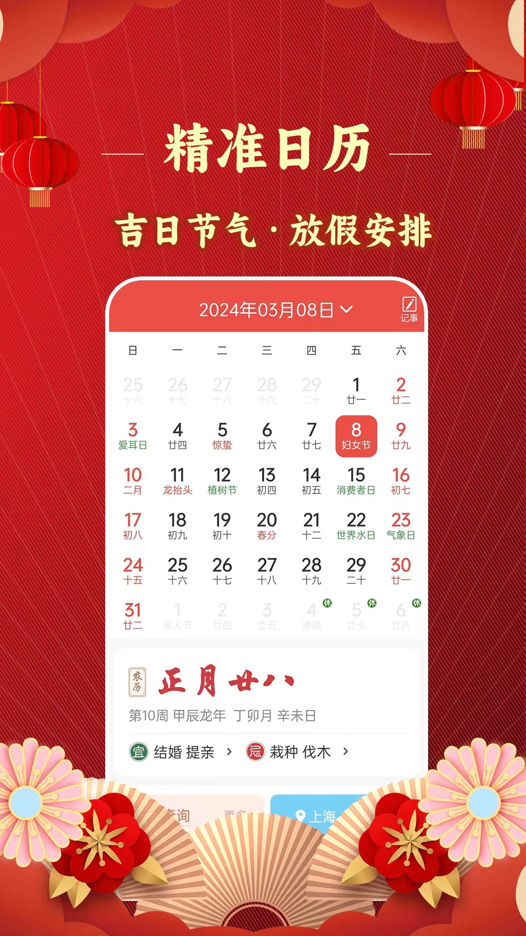 - 万年历方面:涵盖阴历阳历、放假安排、节日节气等内容。