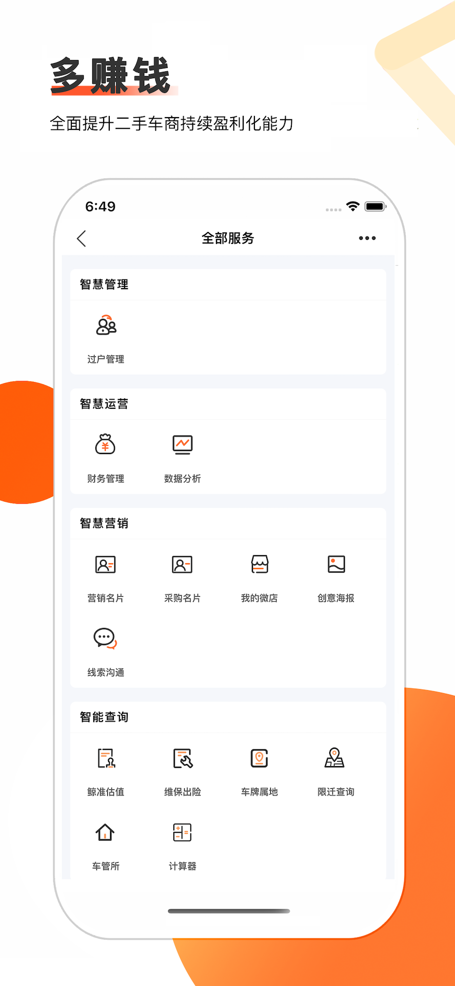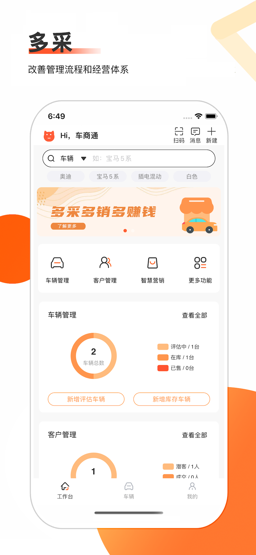 车商通是丰车公司面向二手车商推出的智慧进销存系统。