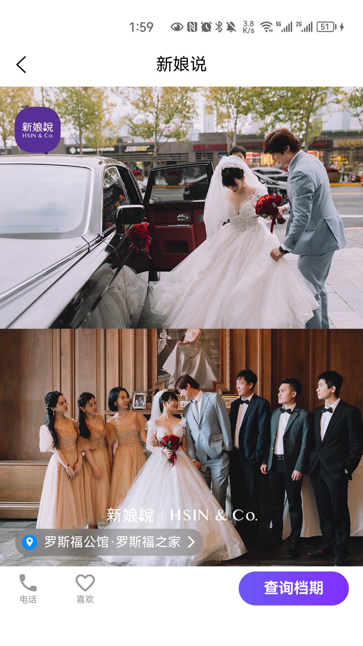 新娘说APP为新娘群体服务,提供VR场地评测、主题婚礼案例查阅、吉日档期查询、热门场地带看预约、在线支付等功能,为您打造愉悦的婚礼筹备体验。