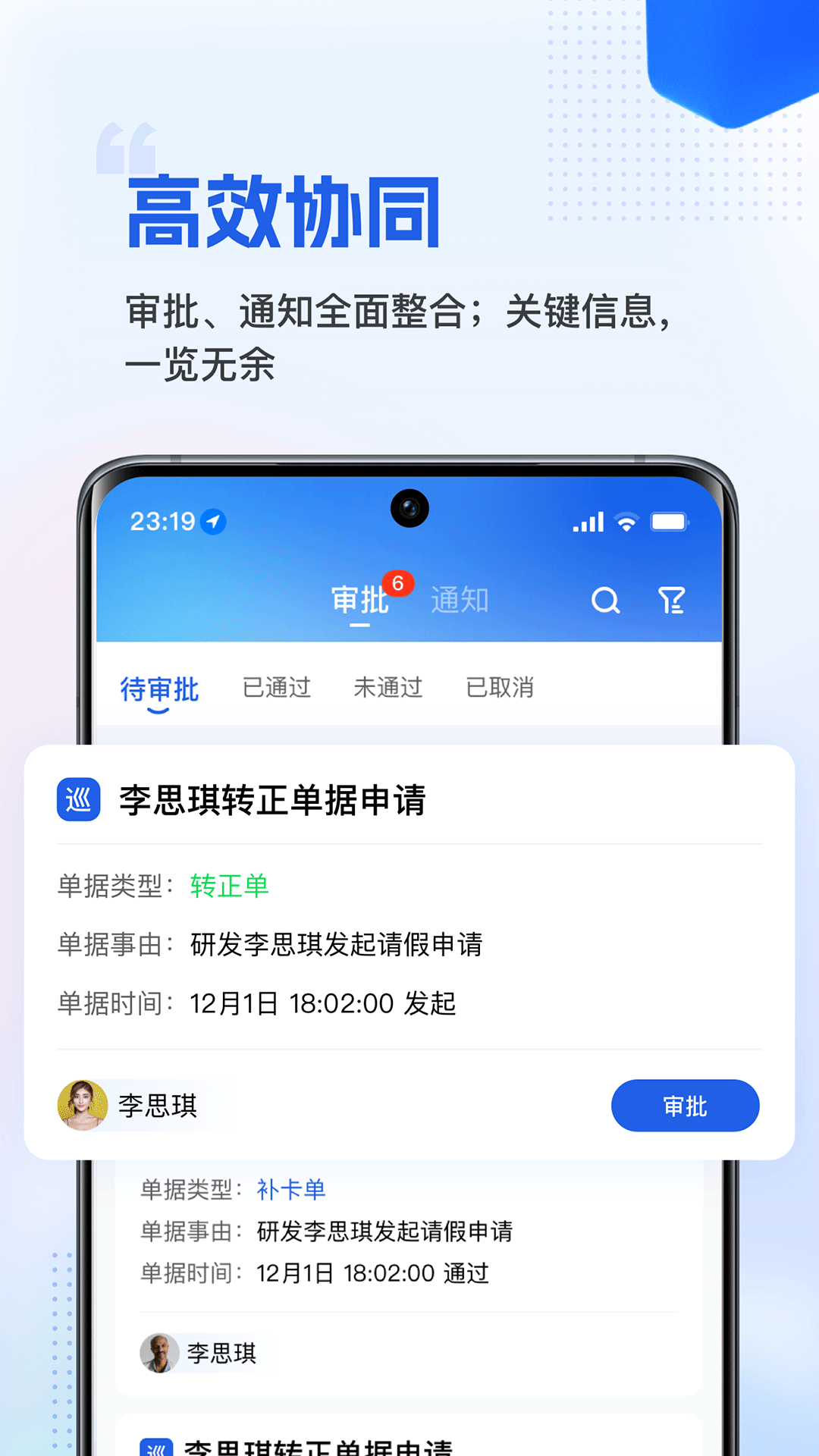 - **【信息蜂巢】**:将六大应用的审批、通知进行一站式聚合,让关键信息一眼就能全部看到。