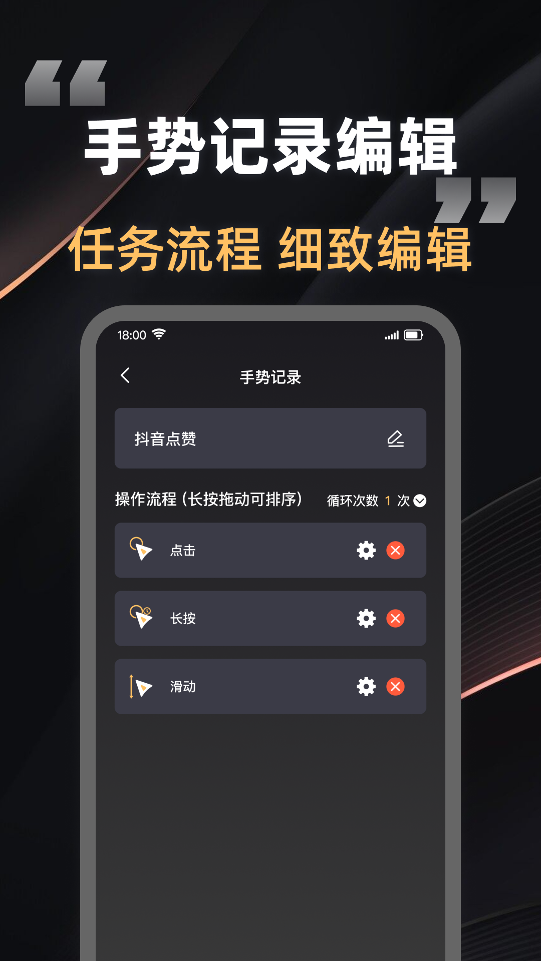 手势录制:提供手动录制功能,您可以自定义点击路径和手势操作,录制完成后即可自动循环播放,实现复杂操作的自动化。