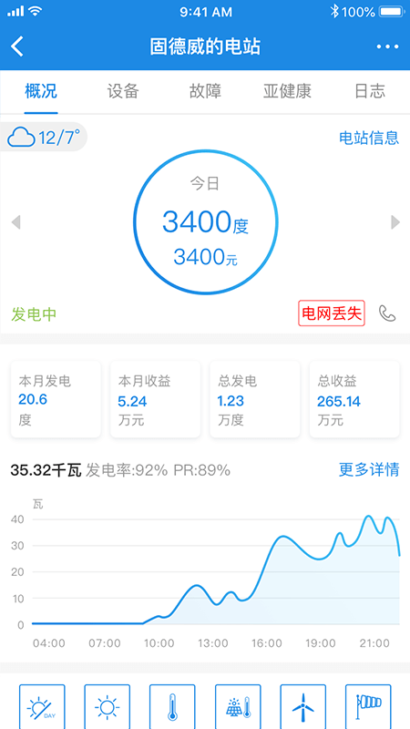 不管何时何地,您都可以通过小固云窗随时留意电站的发电状况、收益情况以及设备的运行状态。