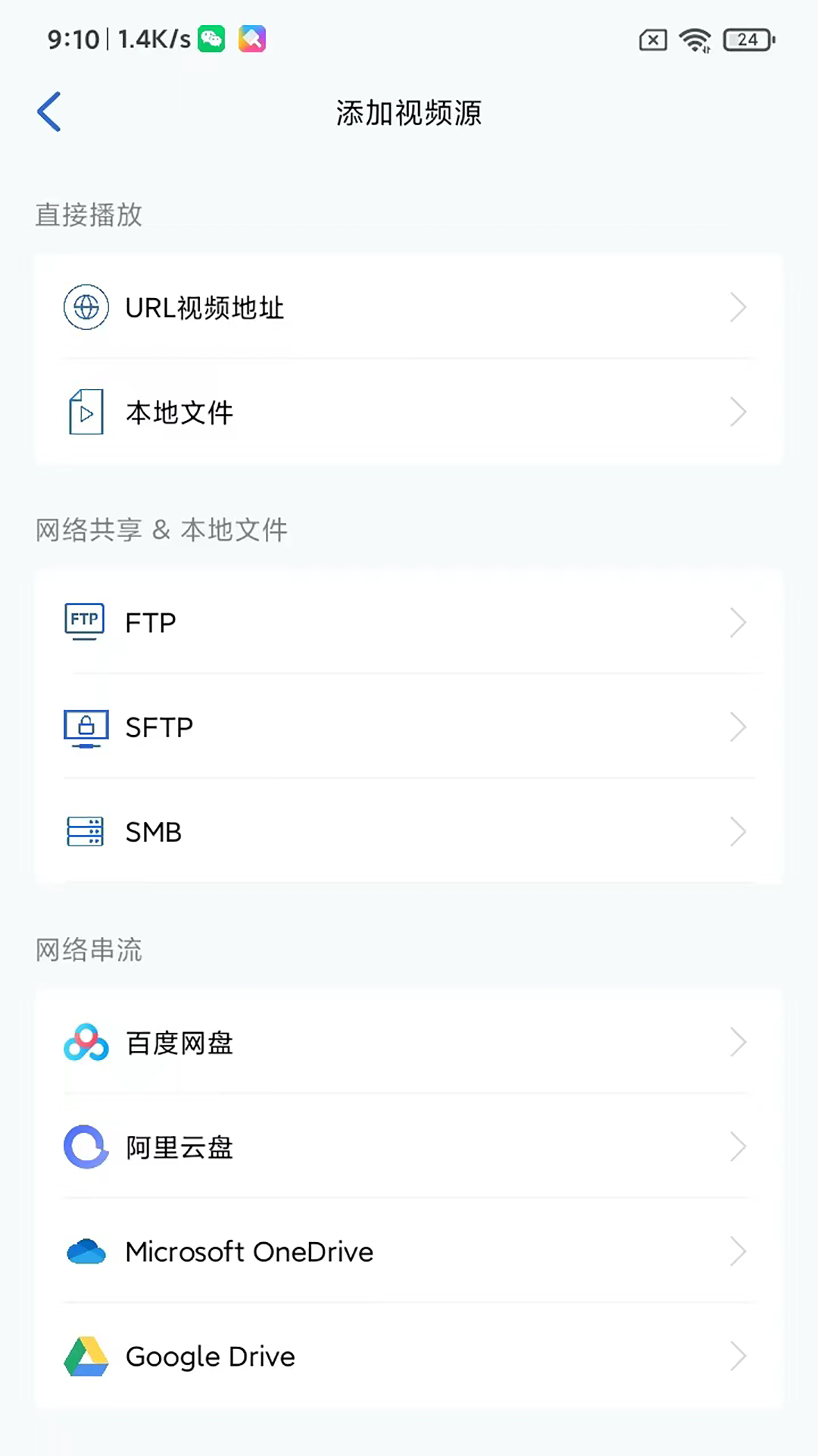 麦豆是流媒体全能播放器,支持各种存储协议ftp,sbm,sftp,本地文件、url,已经支持多种网盘存储例如:百度网盘,阿里云盘等。