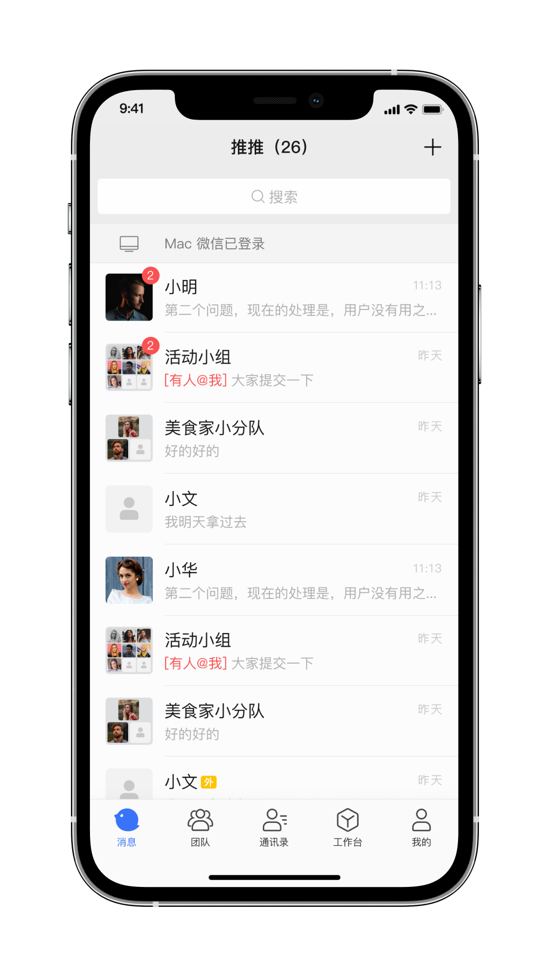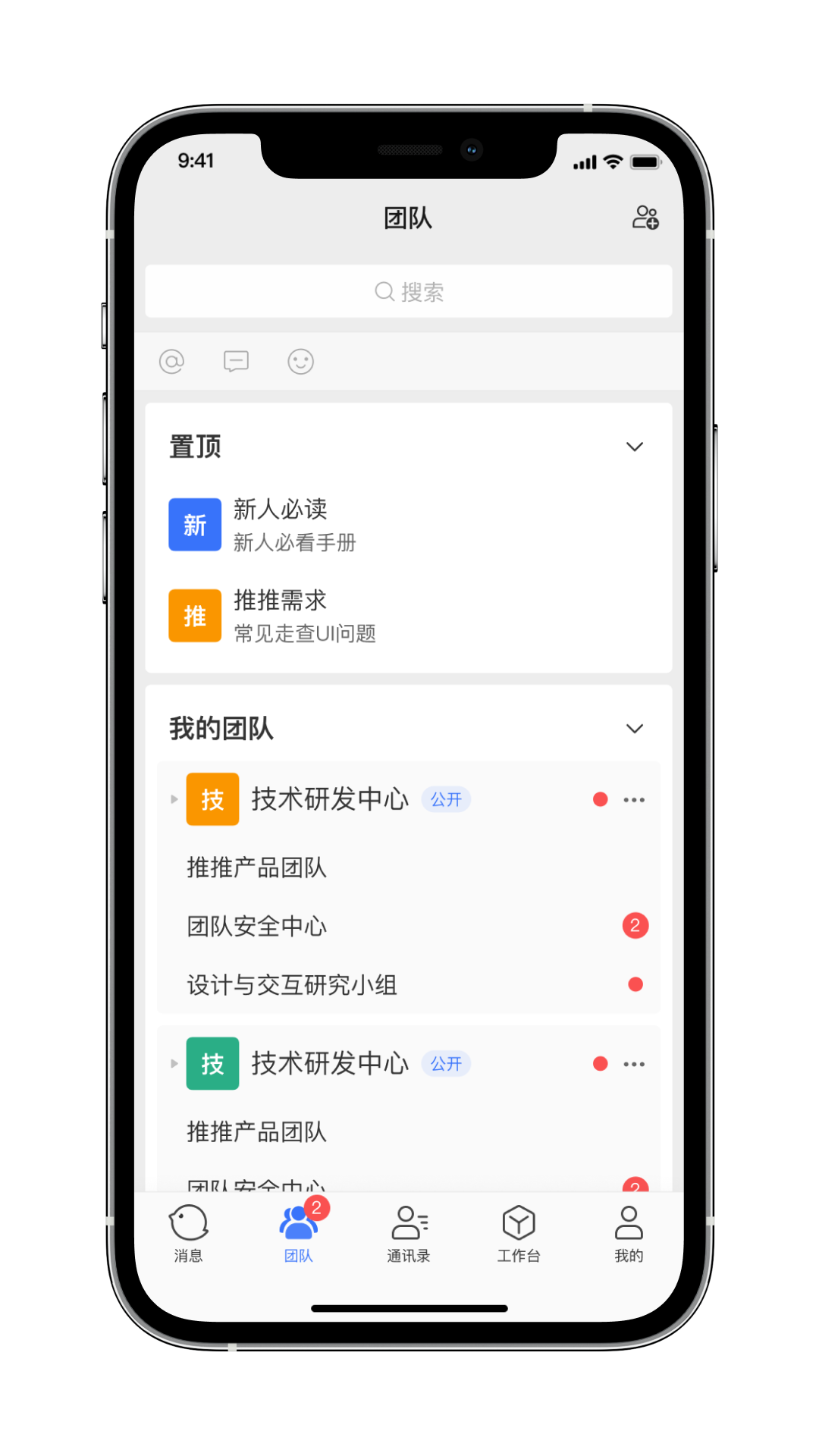 【推推】:满足员工日常办公,待办,消息,自定义常用应用,日常提醒等。