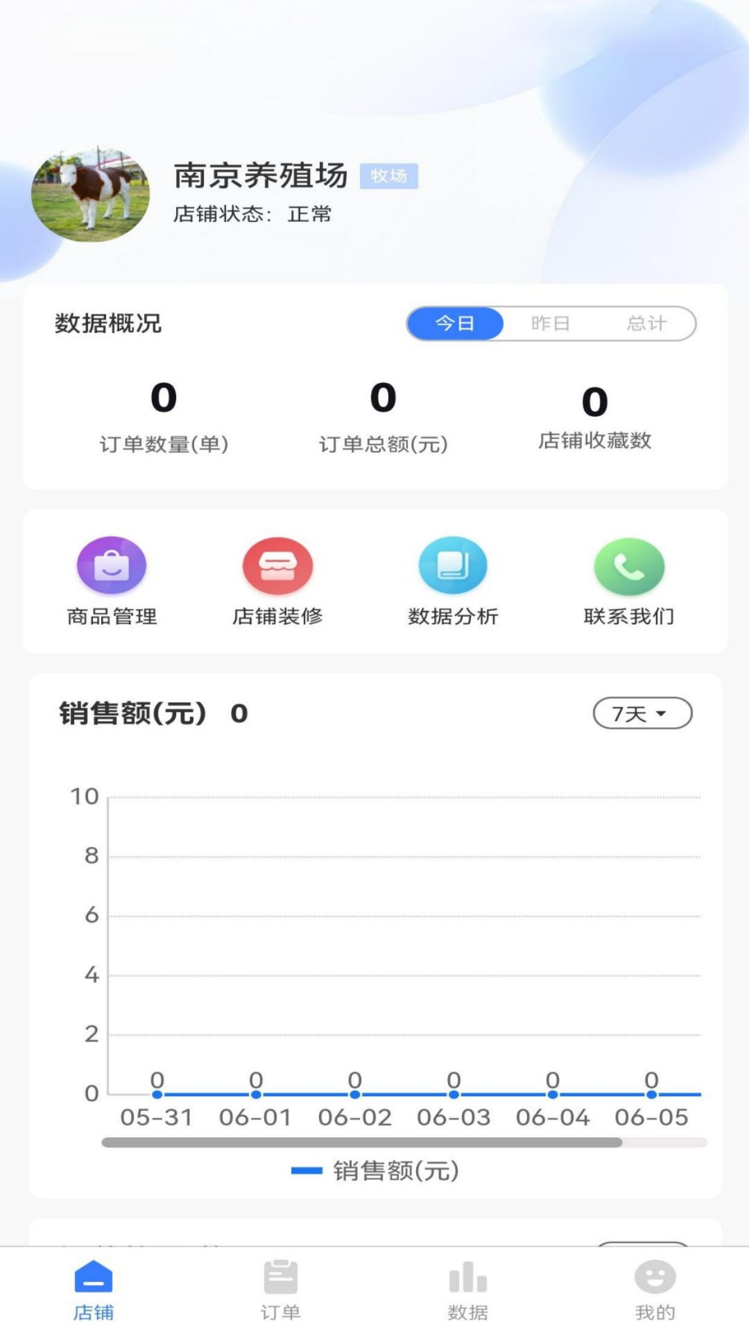 数据分析模块是牧农商家的又一亮点。通过对销售数据的深度挖掘和分析,商家可以了解店铺的运营状况,包括销售额、订单数量、订单商品数等,为经营决策提供有力支持。