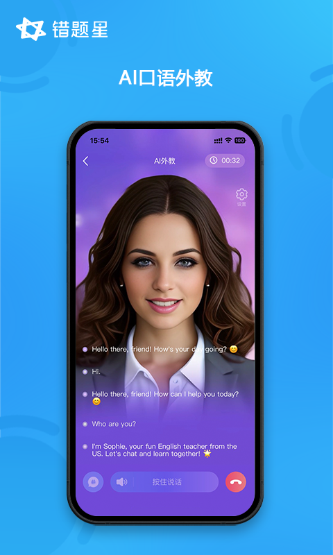错题星具有诸多强大功能,包括AI错题本、AI拍照答疑、AI拍照批改、AI口语训练(涵盖AI外教口语)、AI去手写等,并且支持在手机与Pad上使用。