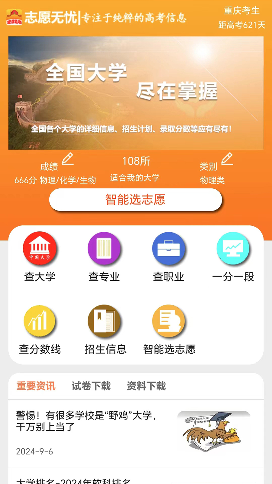 志愿无忧是一款能够助力考生准确填报高考志愿的软件。它整合了历年全国高考志愿填报的数据,以及各本科、专科高校的专业、录取分数线等信息,全方位地协助考生进行高考志愿填报,其核心功能主要有以下几个方面: