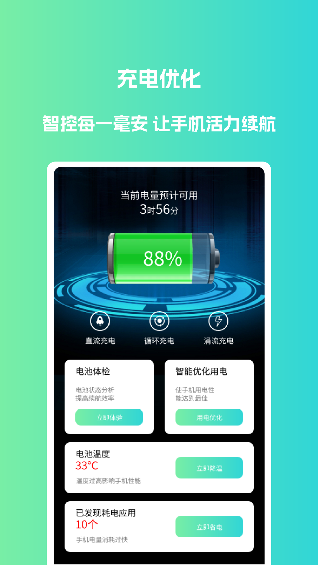 电池优化大师采用多种措施来为用户提升手机续航能力并延长电池寿命,这些措施包括优化系统设置、对后台运行的应用进行管理、优化应用程序的使用以及充电与电池保养等。不仅如此,它还能够提高手机的整体运行速度,从而进一步达到节省电量的效果。