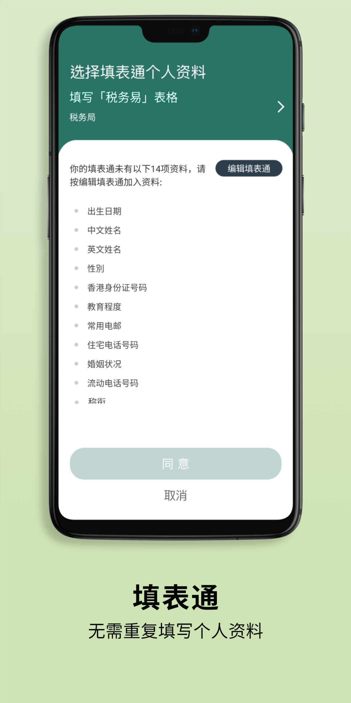 √ 用户可使用「填表通」功能,自定义储存不同的个人资料(例如姓名、性别、身份证号码、出生日期、住址及联络电话等),自动填写表格,无需再为不同的申请填写相同的数据,快捷方便。