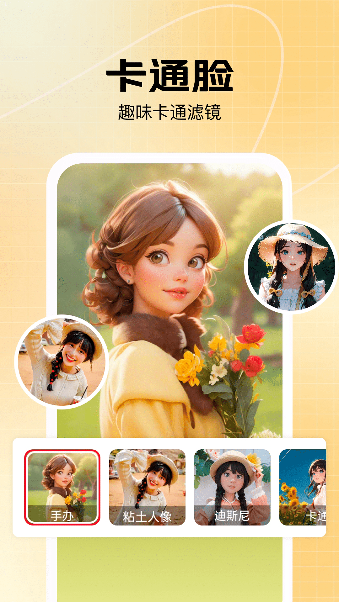 「卡通脸」:具有充满趣味的卡通滤镜,能把您的照片转换为卡通形象,不管是用于自拍还是社交分享,都能增加许多乐趣和创意。