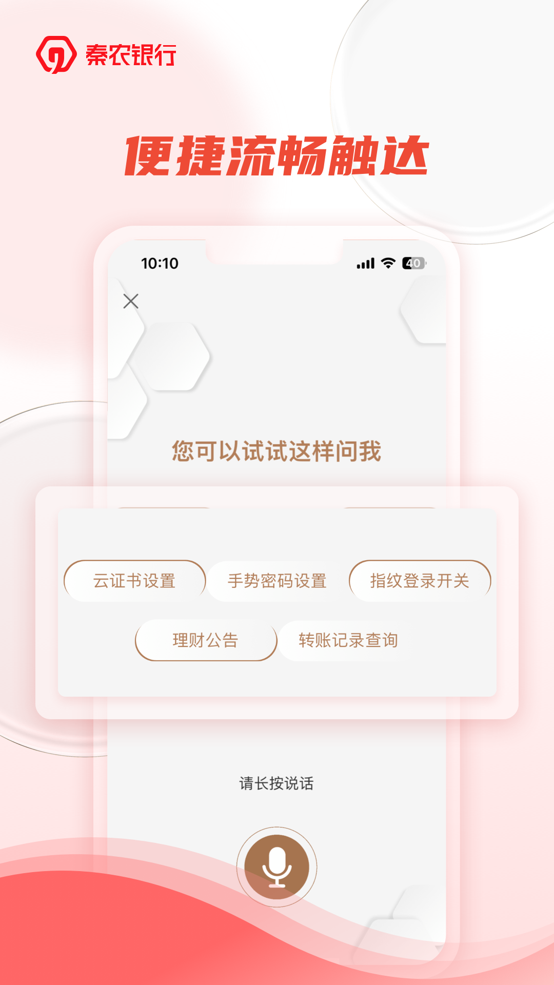 秦农银行专为智能手机客户打造的移动金融服务平台——秦农银行手机银行,其目的在于让客户能够随时随地获取安全、便捷且内容丰富的金融服务,进而满足客户各种各样的金融需求。