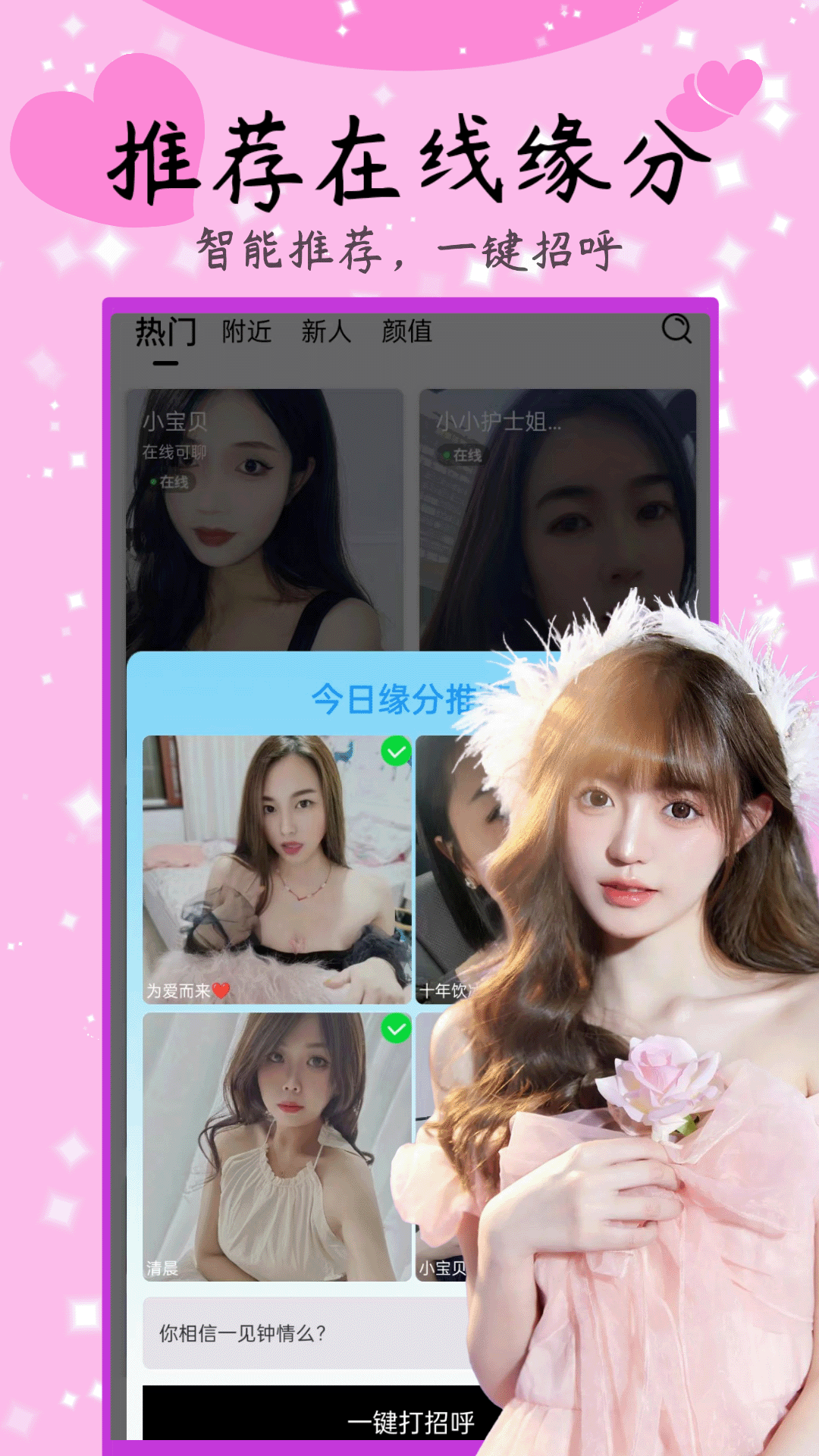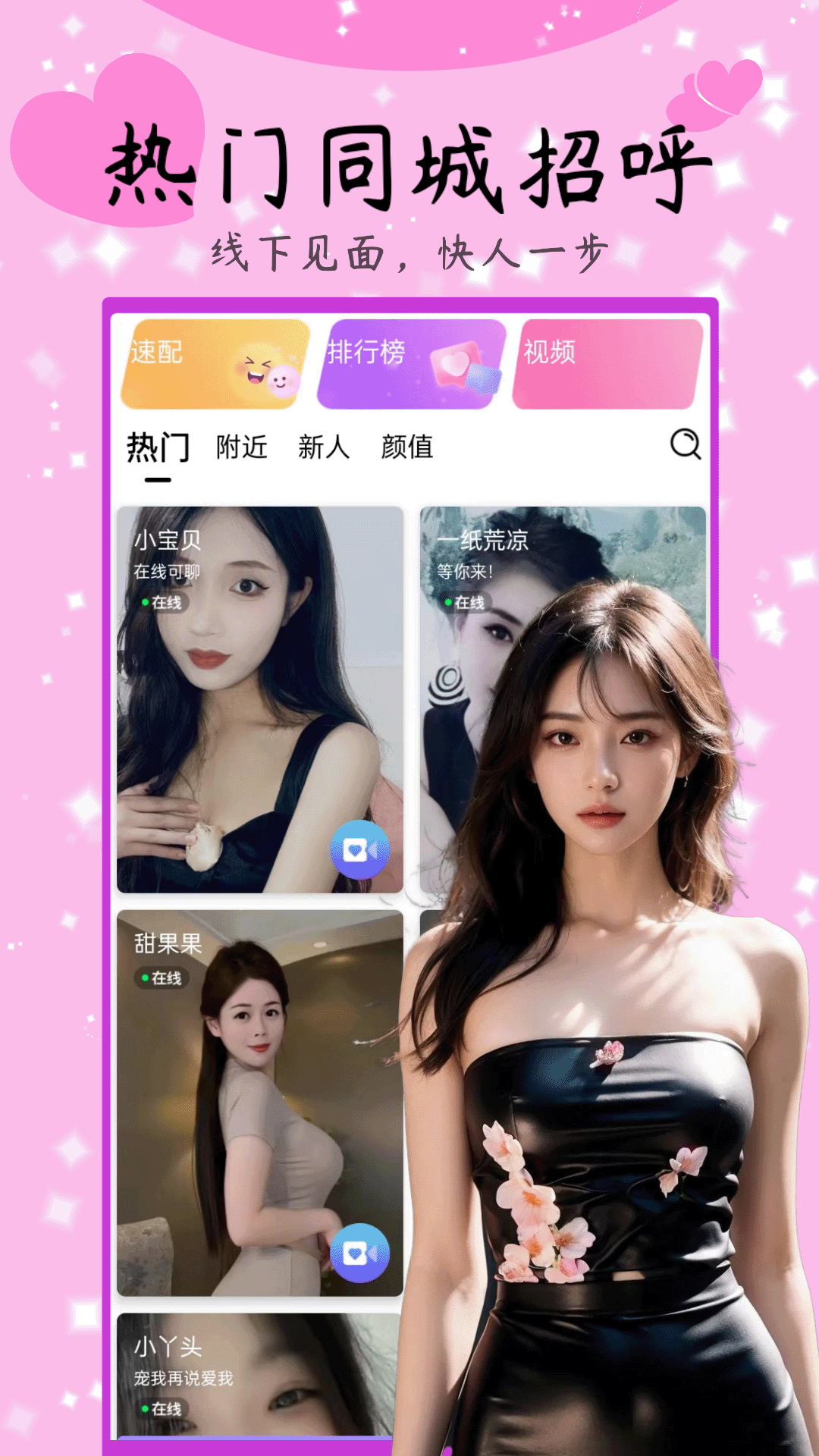 【视频热聊】浪漫邂逅就在这里,总有那个与你合拍的TA。真人实时聊天,还能视频连线哦。