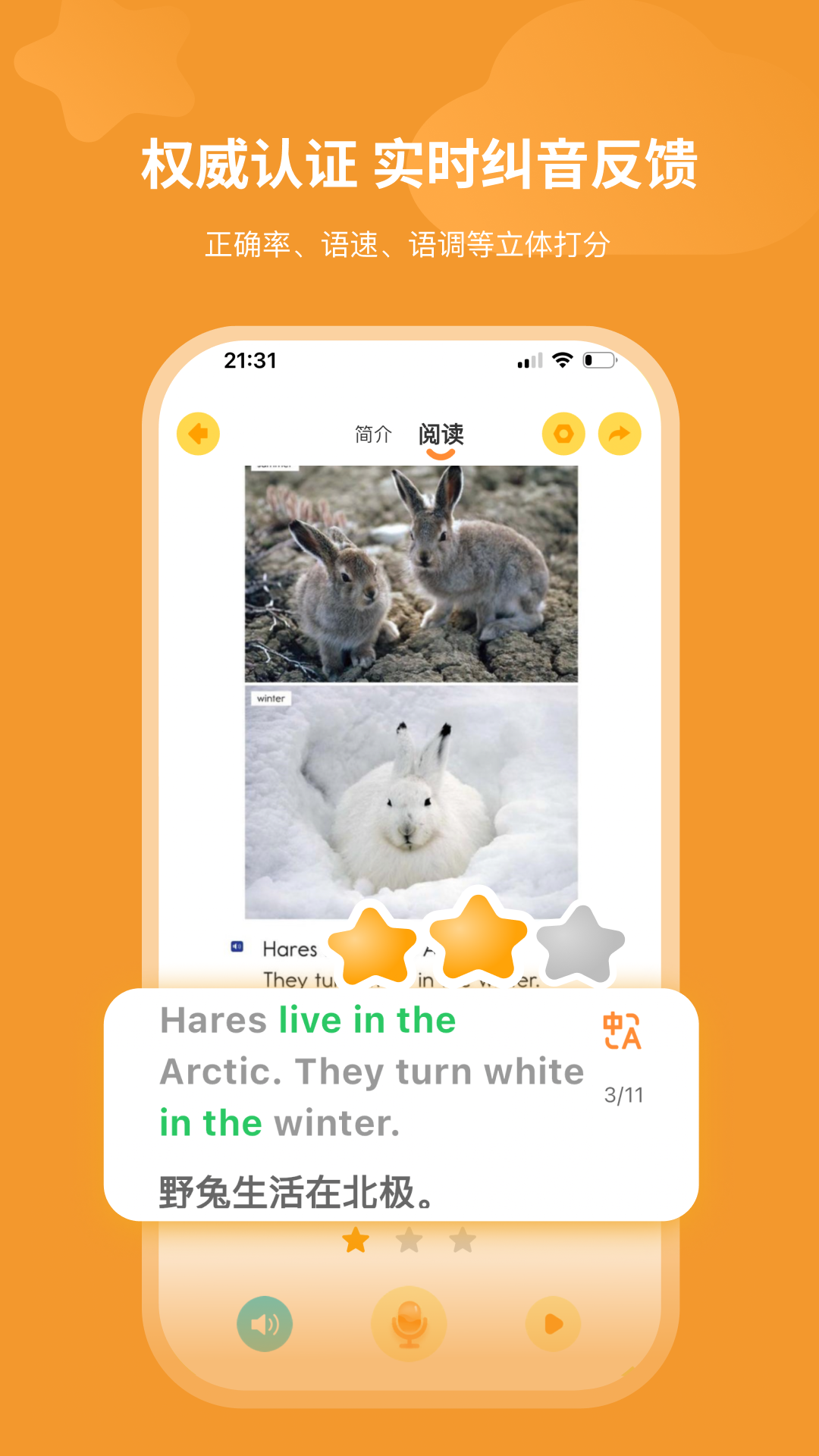 我们的App内部设有经过专业认证的AI发音辅助功能,能够即时给予发音反馈。不管是单个音节还是完整的句子,这个智能AI助手都可以帮助孩子们改进发音,提高语言的自然流畅度。而且它还能根据蓝思值为孩子匹配合适的蓝思值读物。