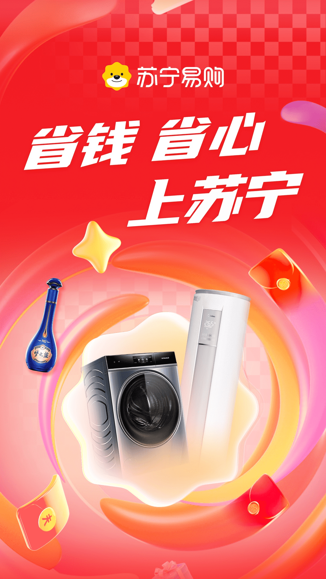 省心 省钱 上苏宁 金秋家电家装节 爆款每千减百 9.9低价包邮 超值秒杀3元3件 以旧换新 至高补贴10% 百亿补贴 大牌好货 疯狂补贴 super会员尊享卡 免费享999元家电服务