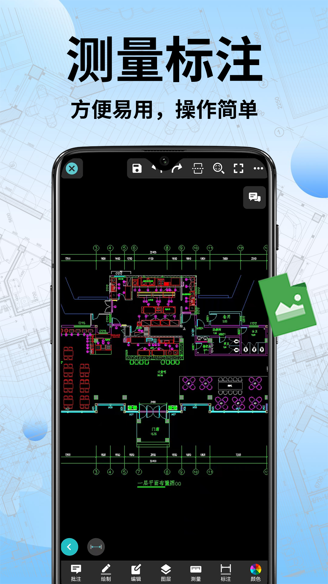 CAD手机快速看图具备快速看图、三维览图、绘图编辑等诸多实用功能。它在建筑设计、施工、现场勘测、仿真分析、家居装饰装修、机械制图、电路设计、测量、测绘、一建、二建等众多工种和行业中都被广泛应用。
