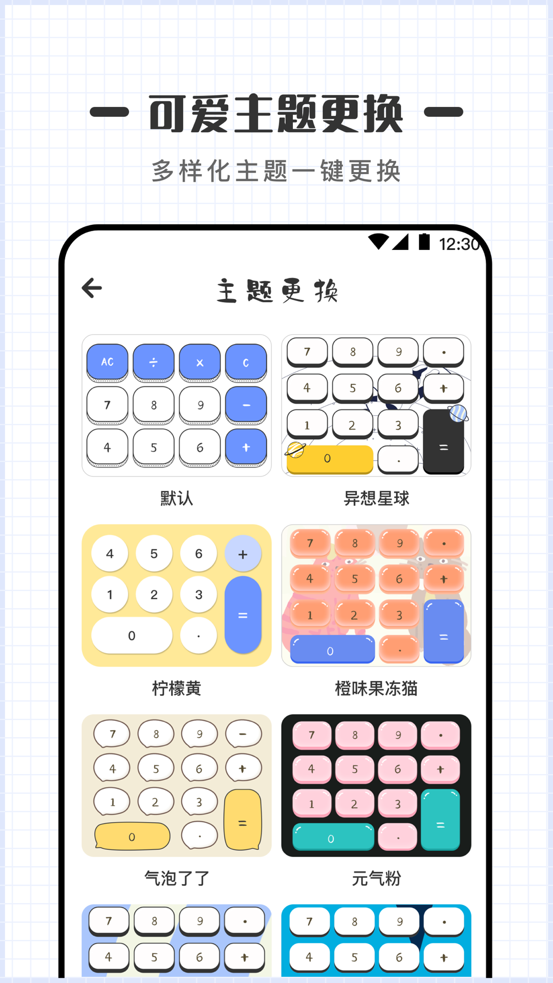 这是一款能够保留历史计算数据的日常计算器哦。它的计算结果可以一键转换大小写,表达式也能一键复制,这在计算结果数值较大的时候,会给用户的操作带来极大的便利。而且还有多种可爱皮肤能够让你随心切换呢。