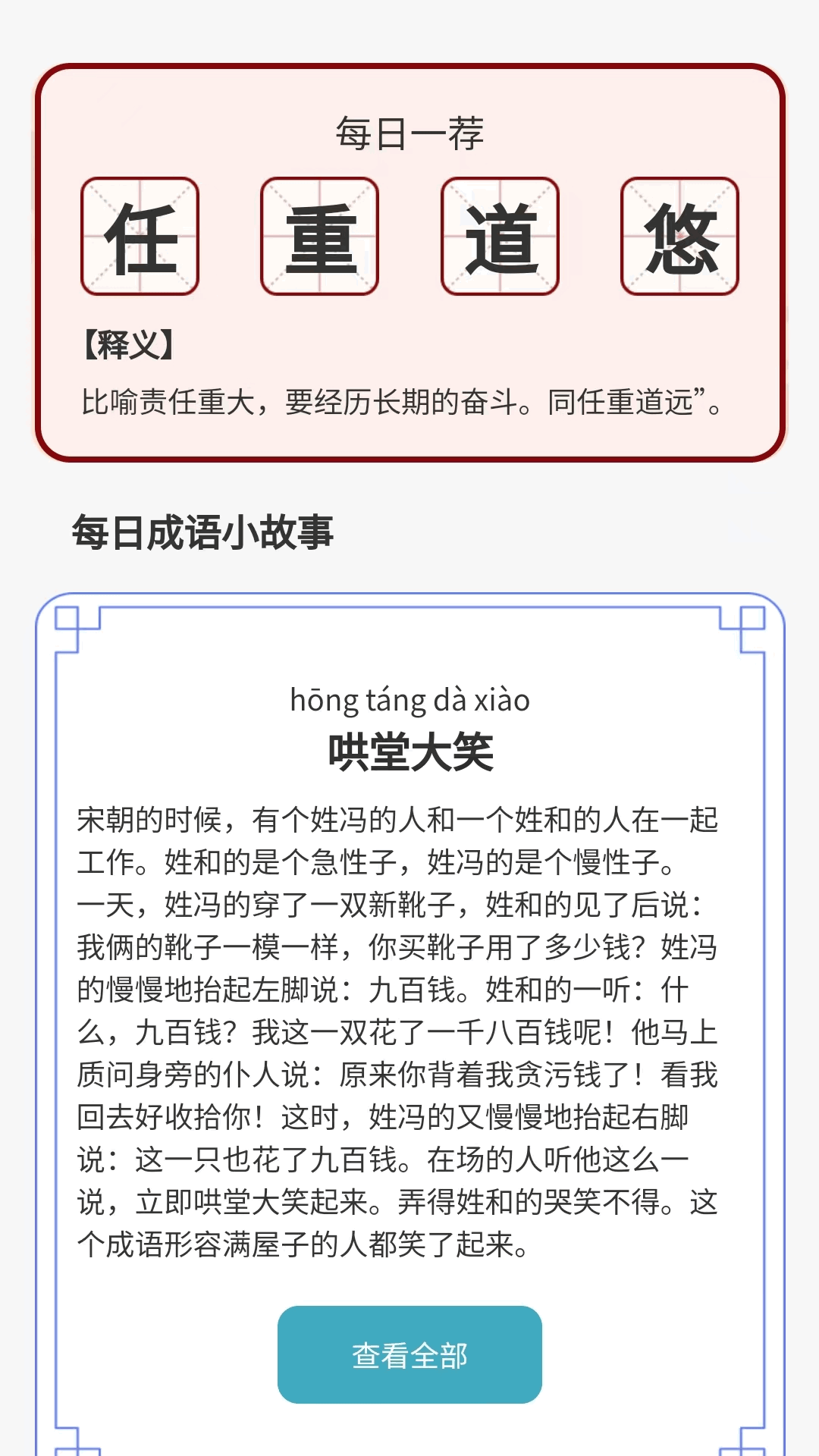 【丰富成语资源】大量的成语的学习,你可以随时查询成语的意义、用法和例句,帮助你更好地理解和运用成语,帮助你提升智力和了解中国传统文化与智慧。