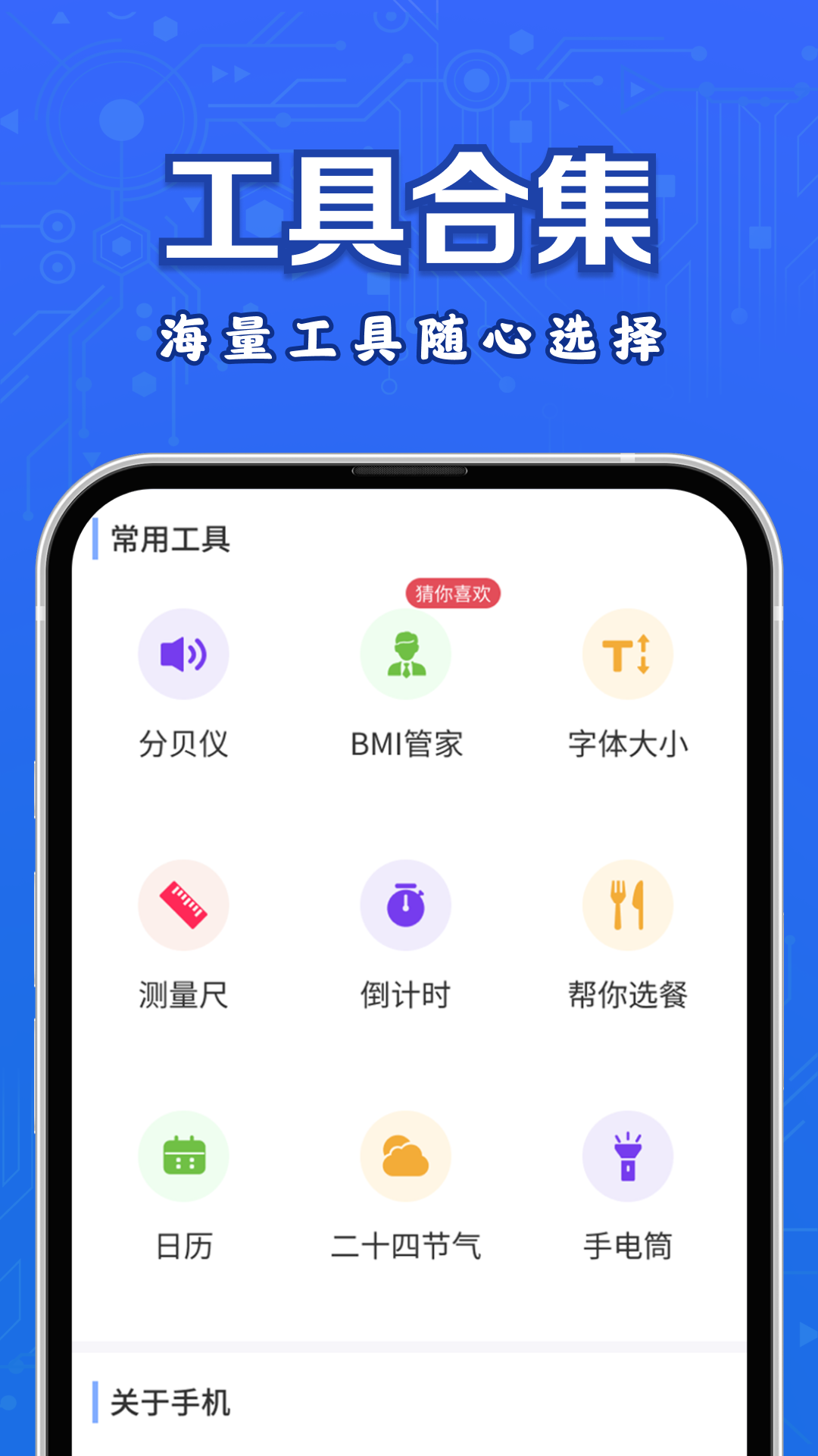 百变工具箱是一个多功能手机工具集合,可以方便的管理手机。功能正在不断完善,致力于成为一个功能全面,方便简单的手机工具。