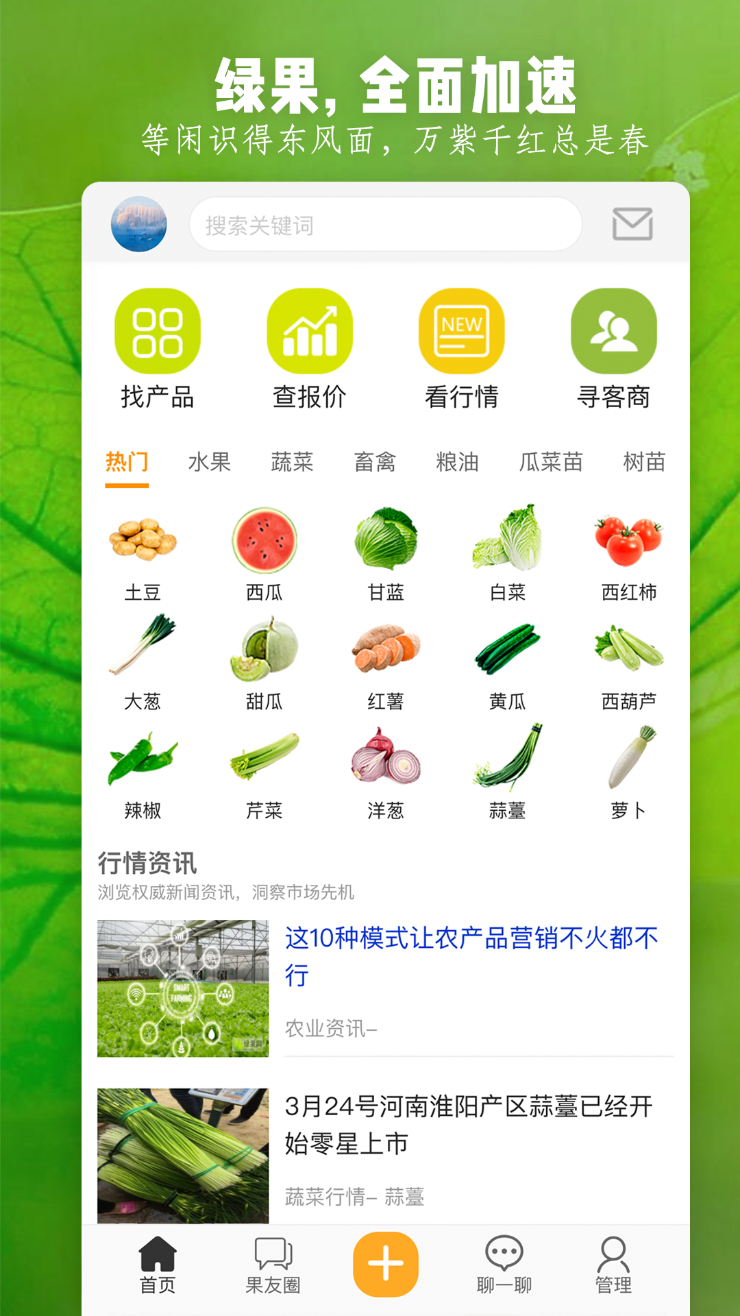 十年耕耘,果友陪伴!绿果网是面向中国地区农村经纪人、批发市场商户、商超以及事业单位、工厂直采的农产品信息服务平台,以诚信为基石,以人为本,为广大从事农产品购销的农户、商户提供服务,解决农产品购销信息不对称、买卖难的难题。