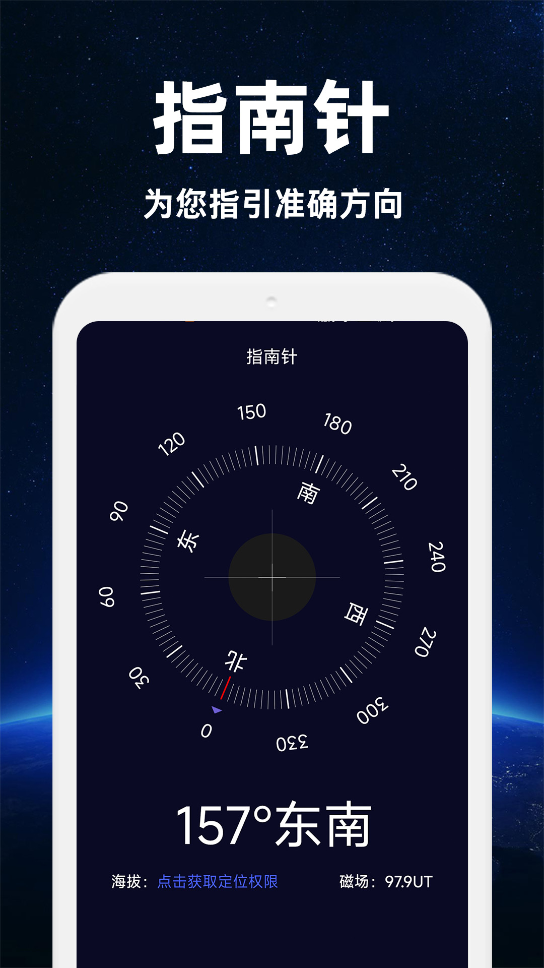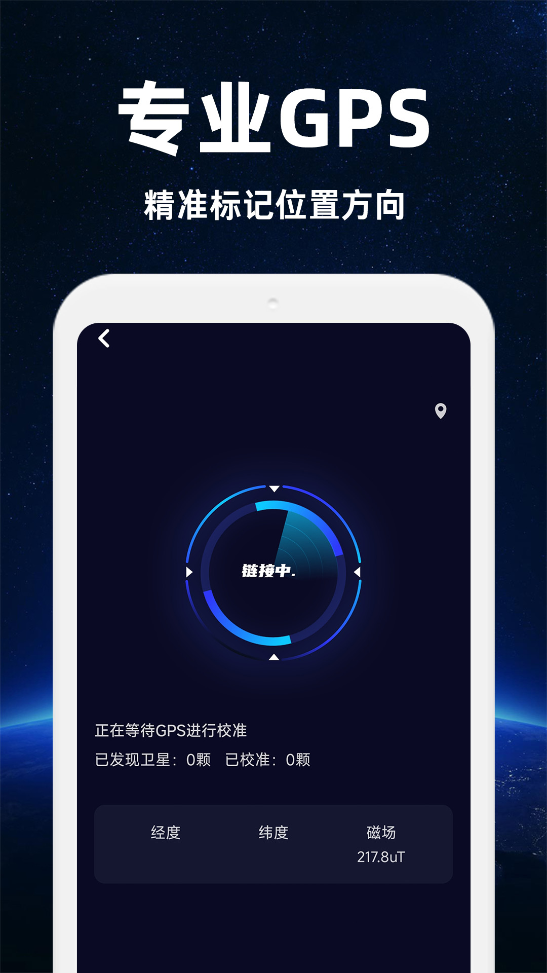 实时获取当前位置的GPS定位,海拔高度以及经纬度坐标,磁场强度等等。