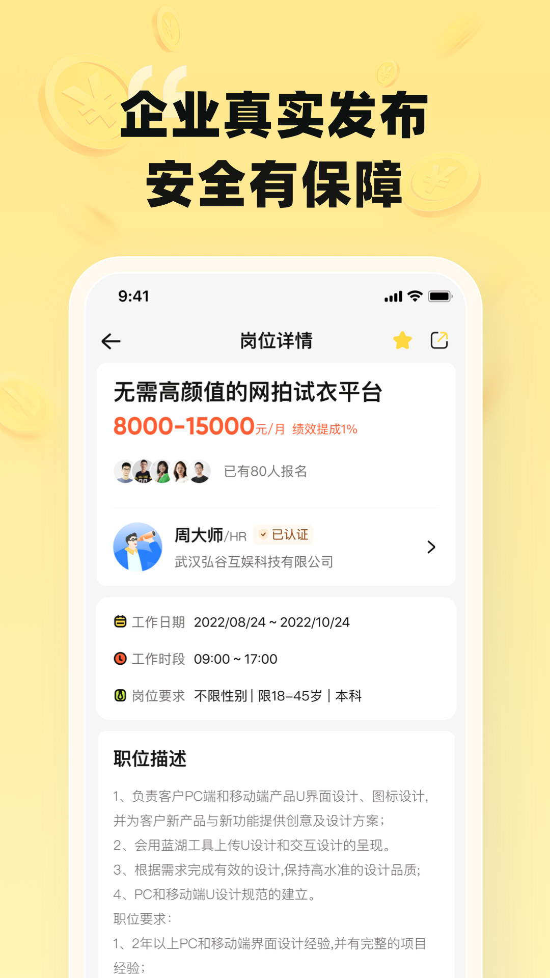 碎片时间找兼职赚零花,附近兼职赚钱找工作,是一款兼职招聘的优选招聘求职平台;