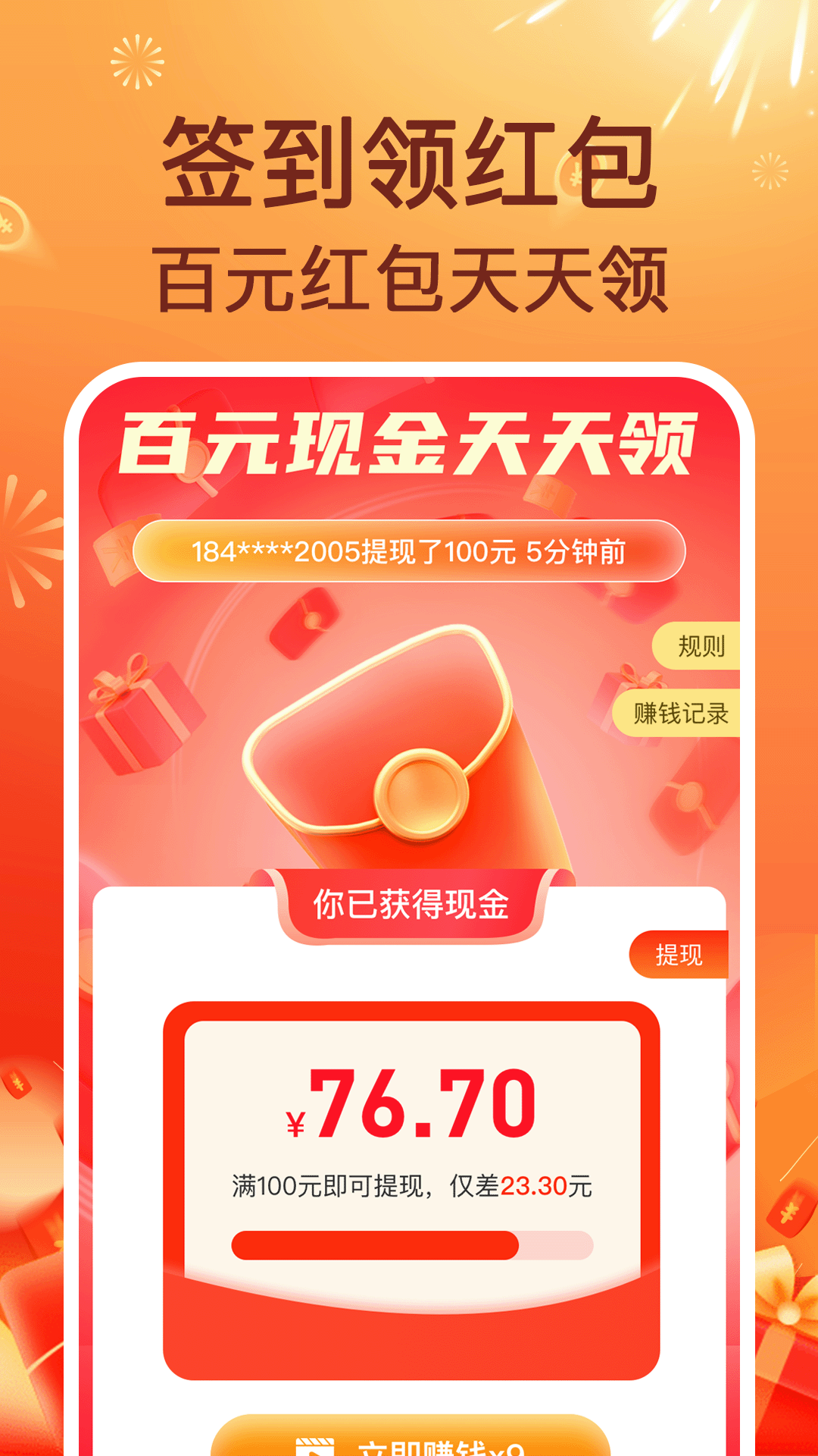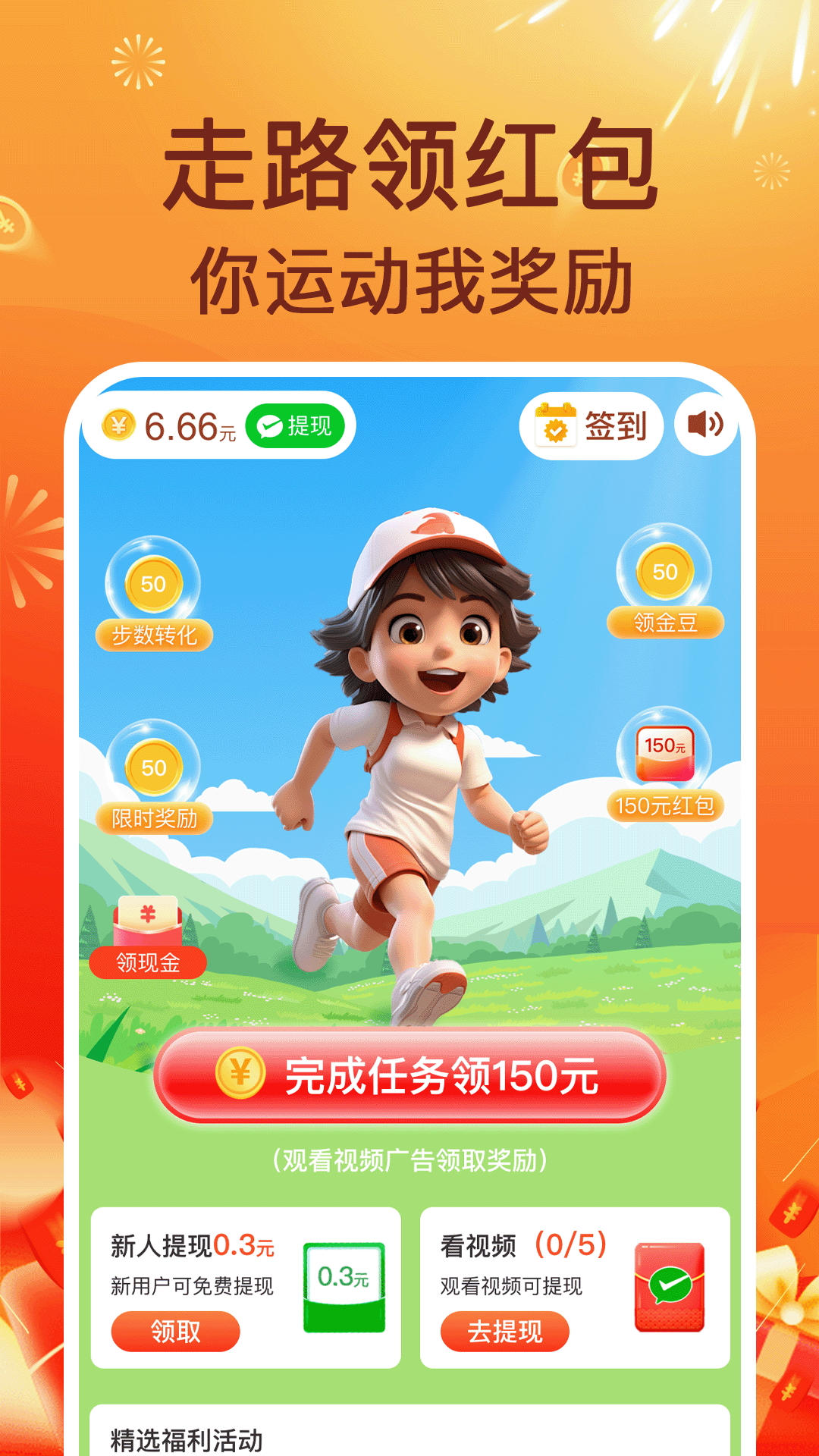 步步走路赚是一款可以走路赚钱的健康计步APP,倡导绿色出行,提升运动乐趣,在享受运动、锻炼身体的同时,让用户的每一步都能产生价值。