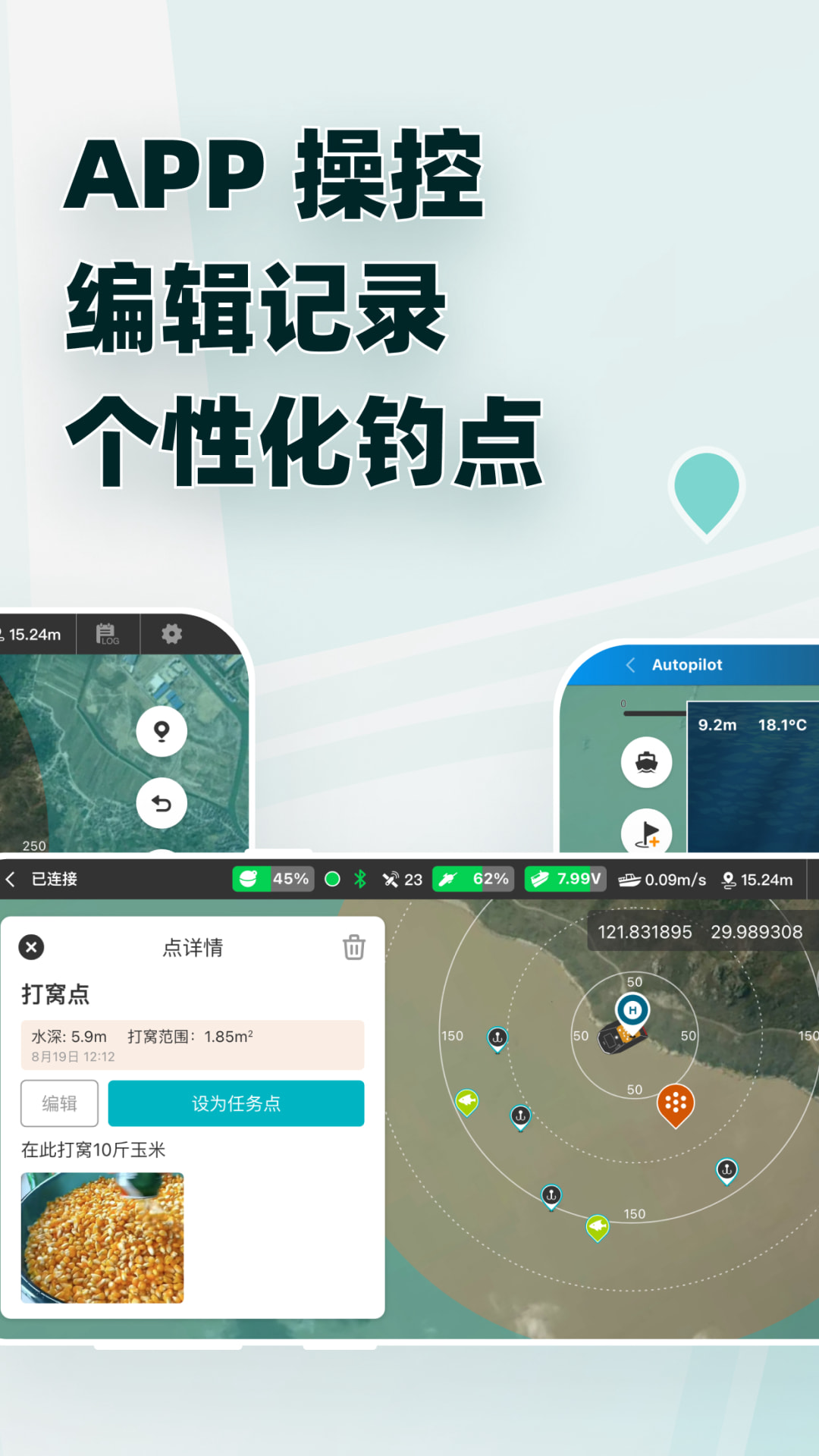 “鱼探”APP是由宁波智鱼网络科技开发的一款集硬件操作、地图标记、视频教学等功能于一体的工具类移动端软件,其主要的功能是用于操控宁波智鱼网络科技研发的智能探鱼打窝无人船。“鱼探”APP的目标群体用户是国内所有的欧鲤钓爱好者群体,除了硬件操作功能之外,旨在为该群体提供高价值、高品质的增值服务,包括但不限于鱼点地图标记和线上存储、欧鲤钓钓法的教学和培训等。