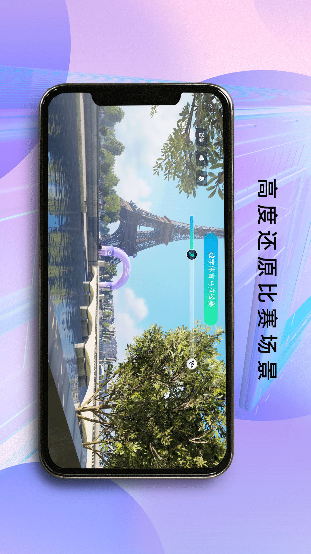 数字城市还原:借助卫星灵境引擎,将数字城市进行高精度还原。用户能够通过AI体感技术体验高度还原的跑步感受,从而置身于沉浸式开放世界,尽情参与到融合虚拟与现实元素的马拉松比赛之中。