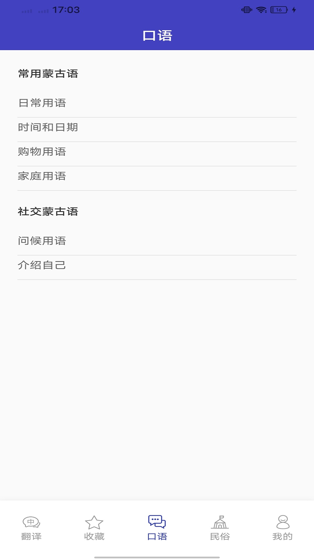- 常用口语:精选日常口语以及各类常用词汇,助力快速掌握基础蒙语。